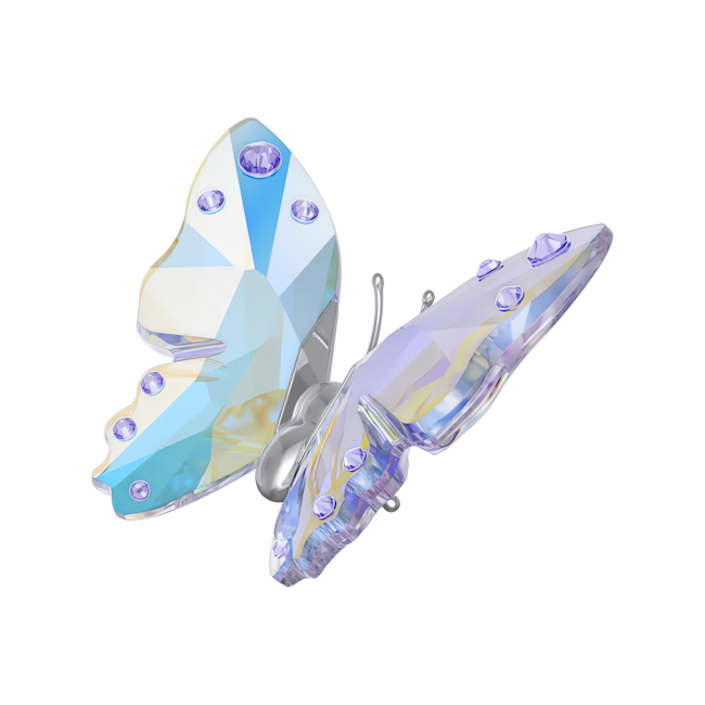 Harikalar dünyasında uçuşa geçen bu parlak ve zarif kelebek, 282 façeta ile işlenmiş olup Aurore Boreale efektli kristalize kanatlara sahip gümüş rengi kaplamalı metal bir gövdeye sahiptir. Bu dekoratif parçanın güzelliğini daha da artıran ilave lavanta noktalar, iç mekanınıza doğanın ışıltılı dokunuşunu katmak için idealdir.
