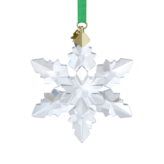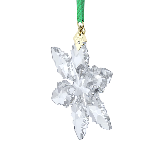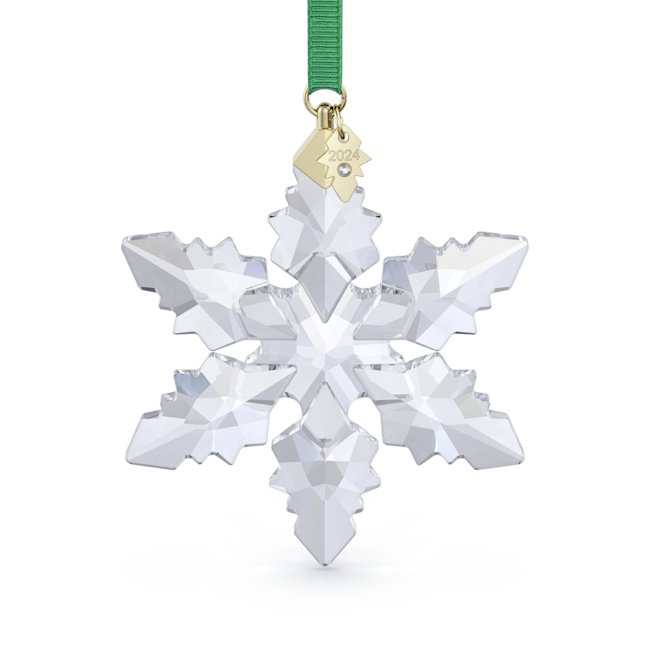 Çok sevilen Annual Edition Süsler geleneğimiz 2024’te de bu göz alıcı kar tanesi tasarımıyla devam ediyor. 133 adet façetayla incelikle tasarlanan bu berrak tasarım, klasik yılbaşı motifine yeni bir yorum getiriyor. Yeşil bir kurdeleden sarkan geometrik parça, üzerine yılın işlendiği ve küçük bir şaton ile süslenmiş altın rengi metalden bir kar tanesi künyeye yer veriyor. Bir ağacı süslemek, pencerenize asmak veya zarif Yılbaşı Süsü Ev Sergilerimizin ya da Cam Fanuslarımızın yanında sergilemek için kullanabilirsiniz. Dekorasyon objesi. Oyuncak değildir. 15 yaş altındaki çocuklar için uygun değildir.