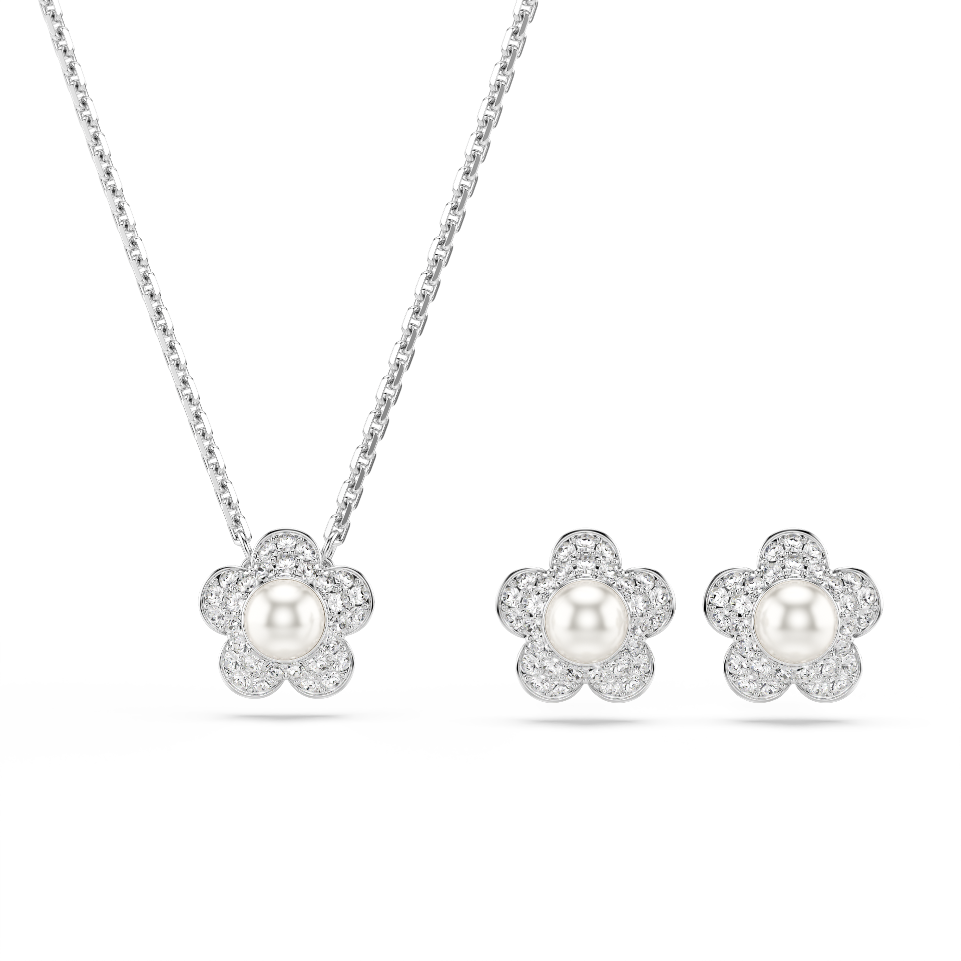 Ariana Grande x Swarovski Set, Kristal inci, Yuvarlak kesim, Çiçek, Beyaz, Rodyum kaplama