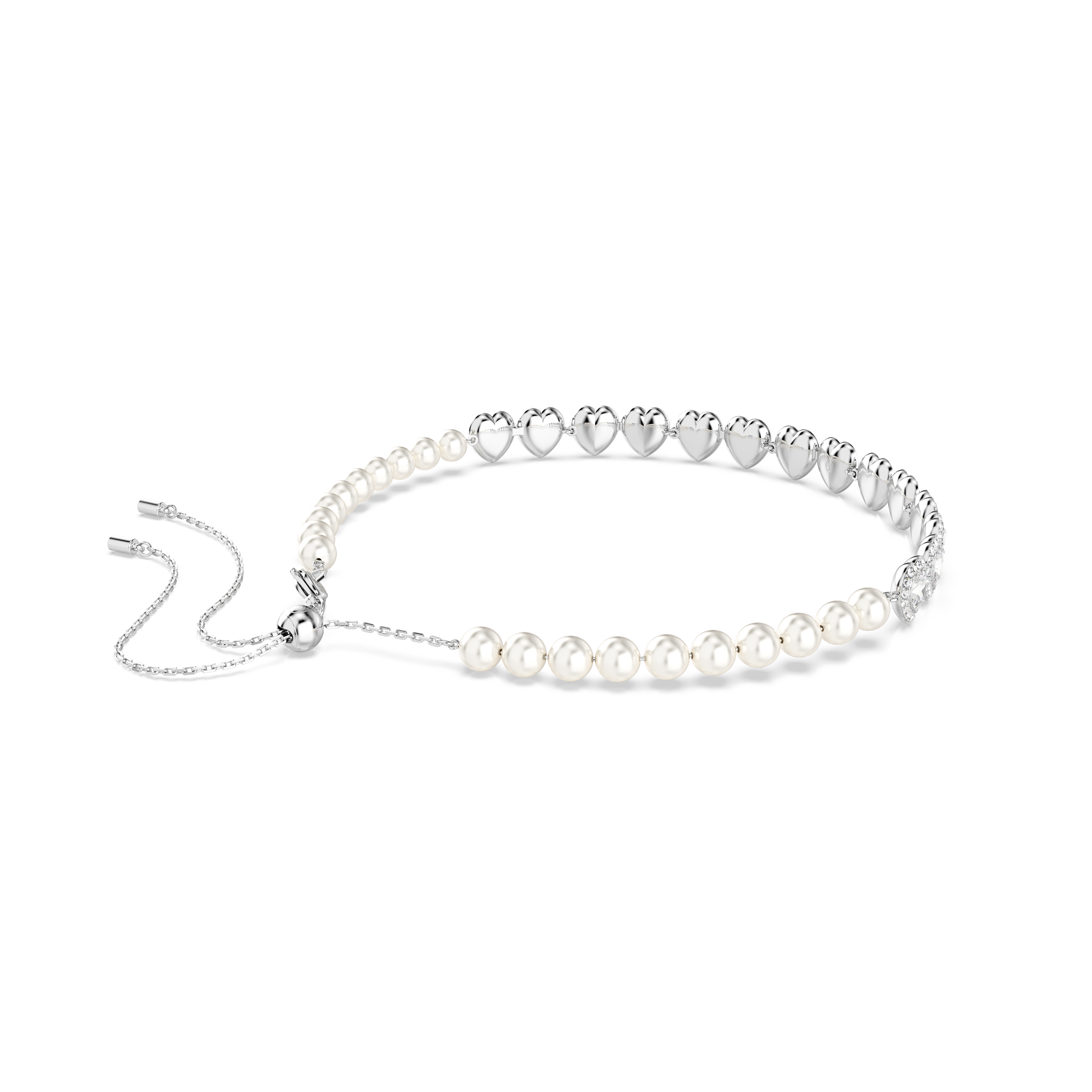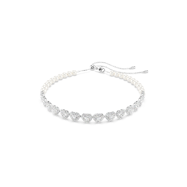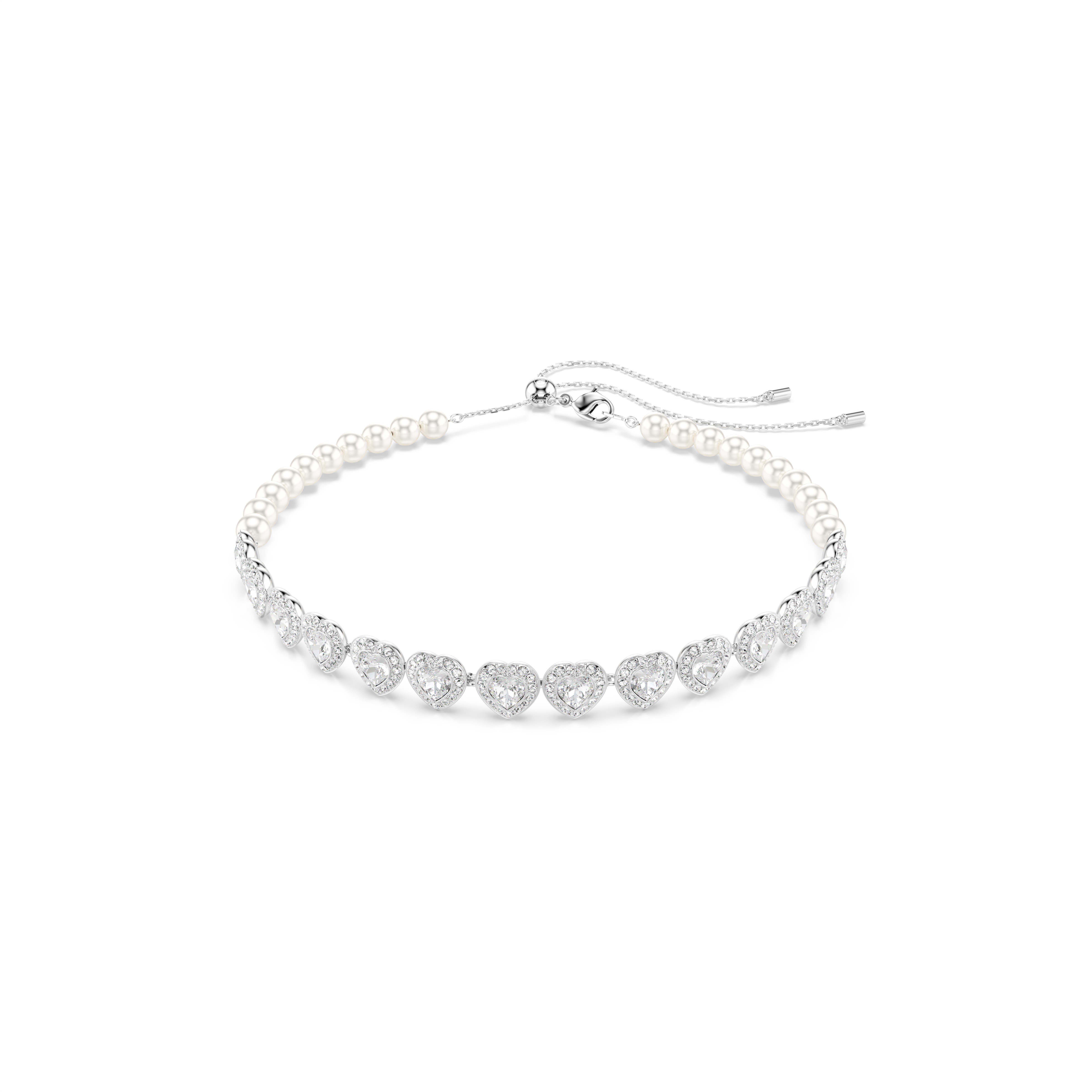 Ariana Grande x Swarovski Tennis gerdanlık, Karışık kesimler, Kristal inci, Kalp, Beyaz, Rodyum kaplama