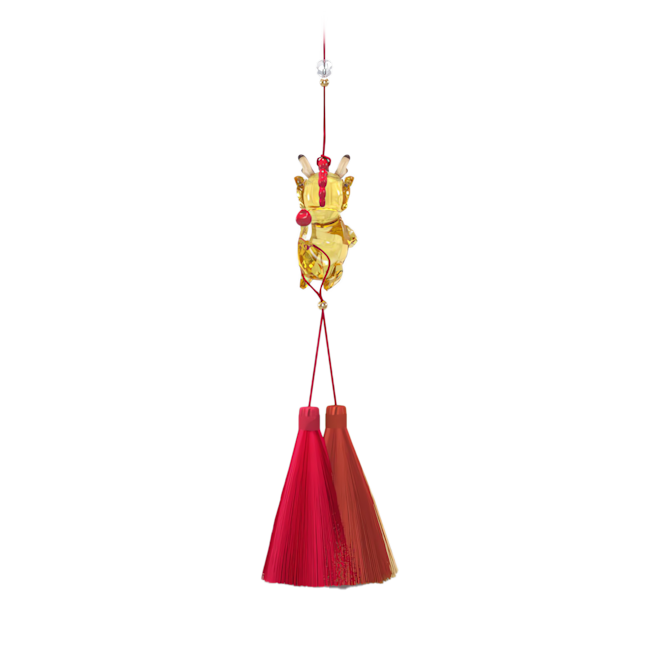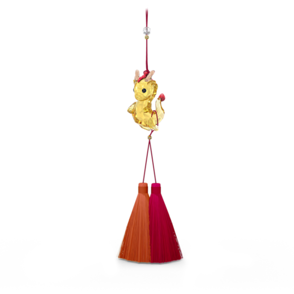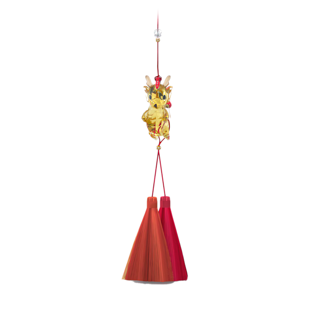 Bu dinamik ejderha süsü, Çin Yeni Yılı kutlamaları için mükemmel bir aksesuar seçeneği. Gücü, onuru ve talihi temsil eden tasarım, ışığı yakalaması için uğurlu olduğuna inanılan kırmızı ve sarı tonlarında 187 adet façetayla şekillendirildi. Kırmızı lake ve altın tonlarındaki metal aksamlar ve tasarımın altındaki kırmızı ve turuncu püsküller göz alıcı detaylar sunuyor. Ejderha Yılı boyunca evinize eğlenceli bir dokunuş katmak için bu süs aksesuarını vitrininizde sergileyin. Dekorasyon objesidir. Oyuncak değildir. 15 yaş altındaki çocuklar için uygun değildir.