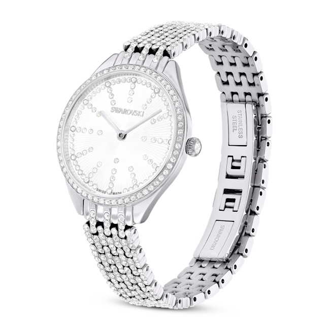 Attract Saat, İsviçre Üretimi, Tam pavé, Kristal bileklik, Gümüş Rengi, Paslanmaz çelik