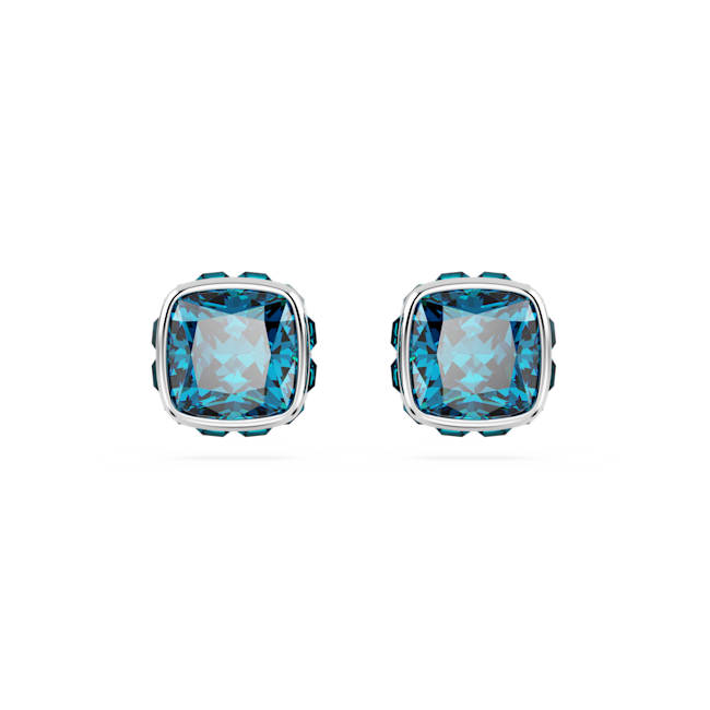 Birthstone düğme Küpeler, Kare kesim, Aralık, Mavi, Rodyum kaplama