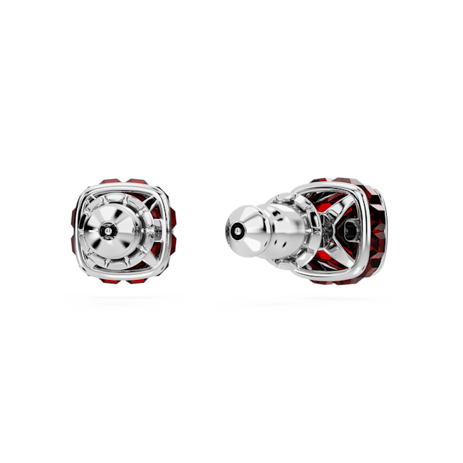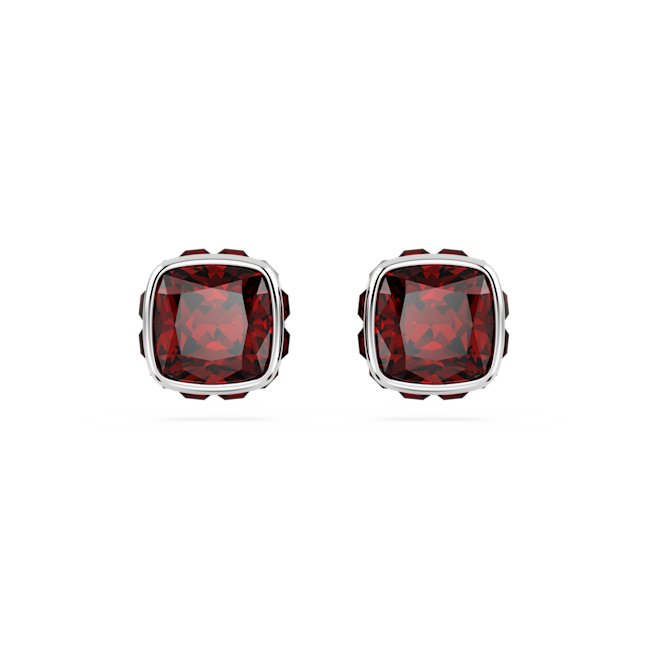 Birthstone düğme Küpeler, Kare kesim, Ocak, Kırmızı, Rodyum kaplama