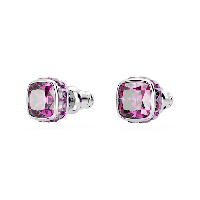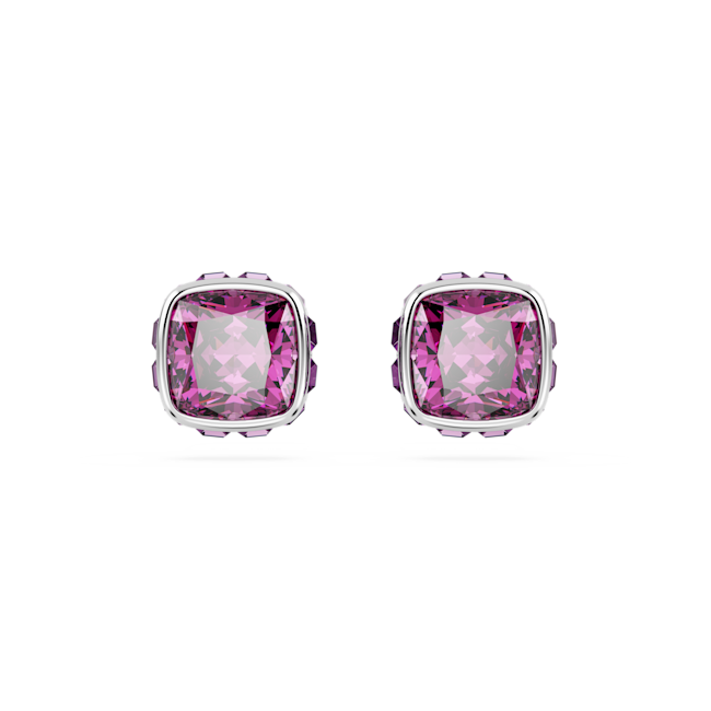 Birthstone düğme Küpeler, Kare kesim, Şubat, Mor, Rodyum kaplama