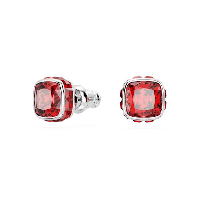 Birthstone düğme Küpeler, Kare kesim, Temmuz, Kırmızı, Rodyum kaplama