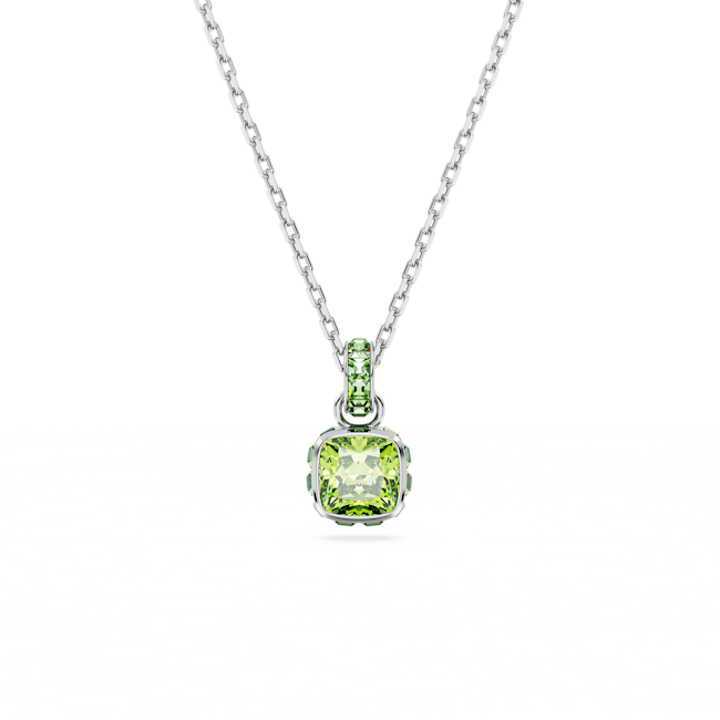 Birthstone Kolye, Kare kesim, Ağustos, Yeşil, Rodyum kaplama