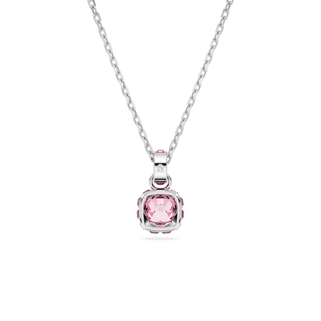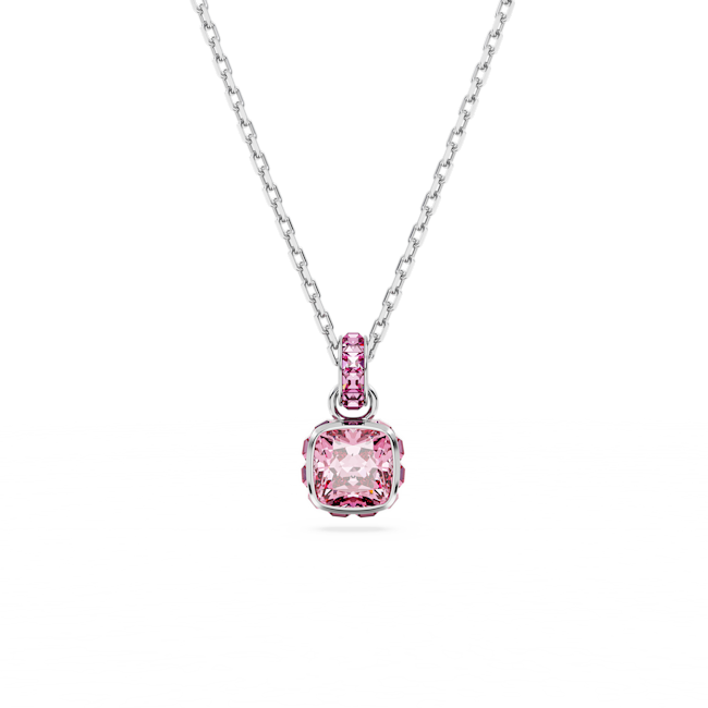 Birthstone Kolye, Kare kesim, Ekim, Pembe, Rodyum kaplama
