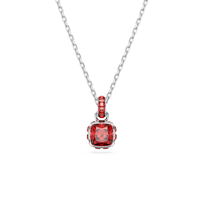 Birthstone Kolye, Kare kesim, Temmuz, Kırmızı, Rodyum kaplama