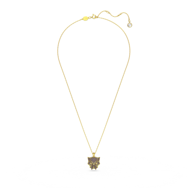Bu Black Panther kolye ucunu kendi tarzınızla harmanlayın ve mücevher kutunuzu kahramanı hâline getirin. Efsanevi Black Panther maskesi, altın rengi kaplama yerleştirme üzerine dizili parıltılı mor kristallerle tasarlandı. Takın ve süper kahramanlığın tadını çıkarın.