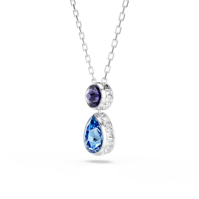 Bu Chroma kolye ile kristali ruh halinize göre çevirebilirsiniz. Bu tasarımda, merkezde mor bir kristal, altında ise bir tarafı berrak, diğer tarafı mavi olan daha büyük, çift taraflı bir kristale bulunur. Kendinizi ifade edebilmek için istediğiniz ideal, eğlenceli bir seçim.