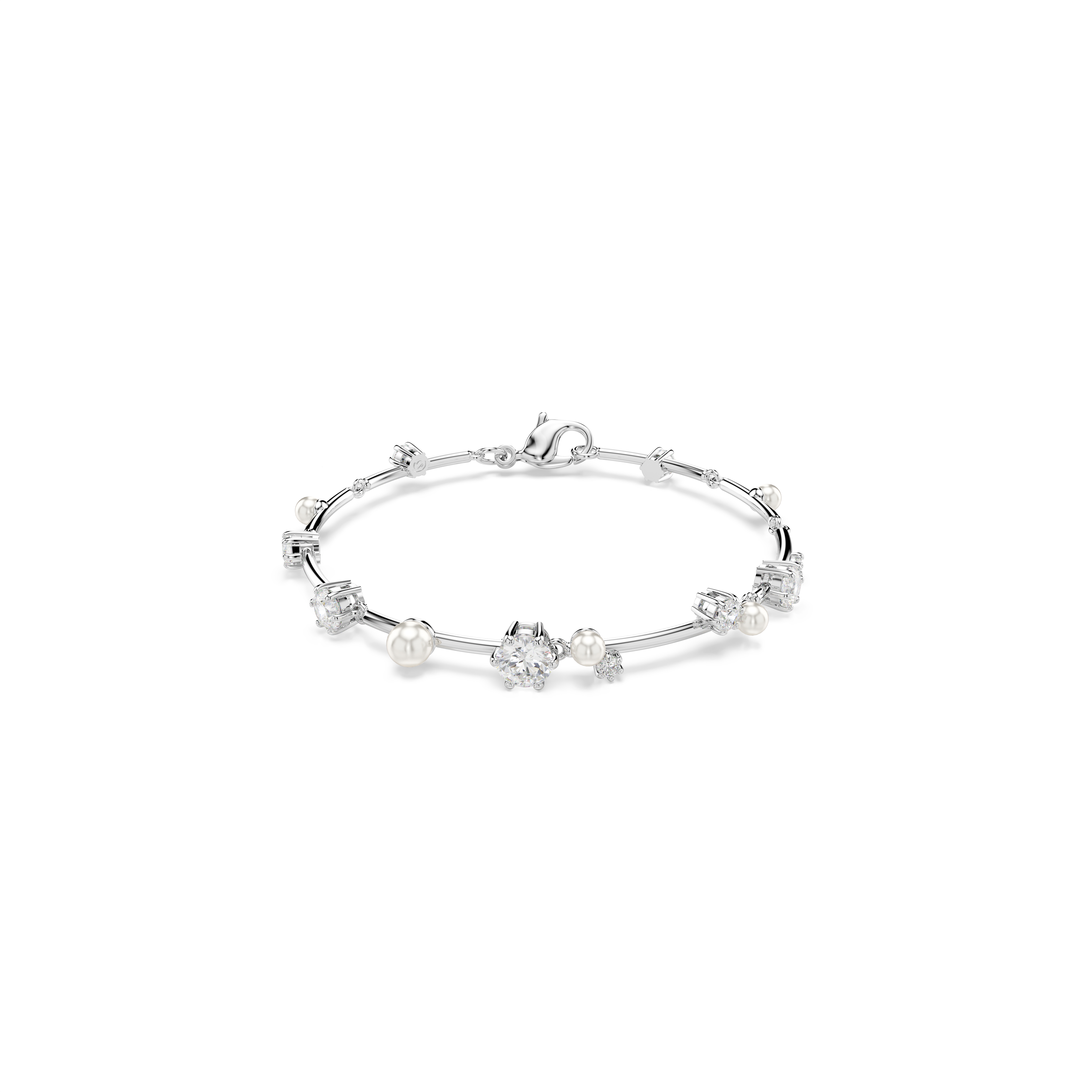 Constella Tennis bileklik, Kristal inci, Yuvarlak kesimler, Beyaz, Rodyum kaplama