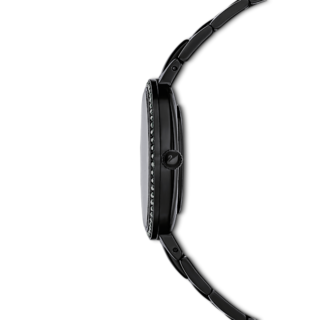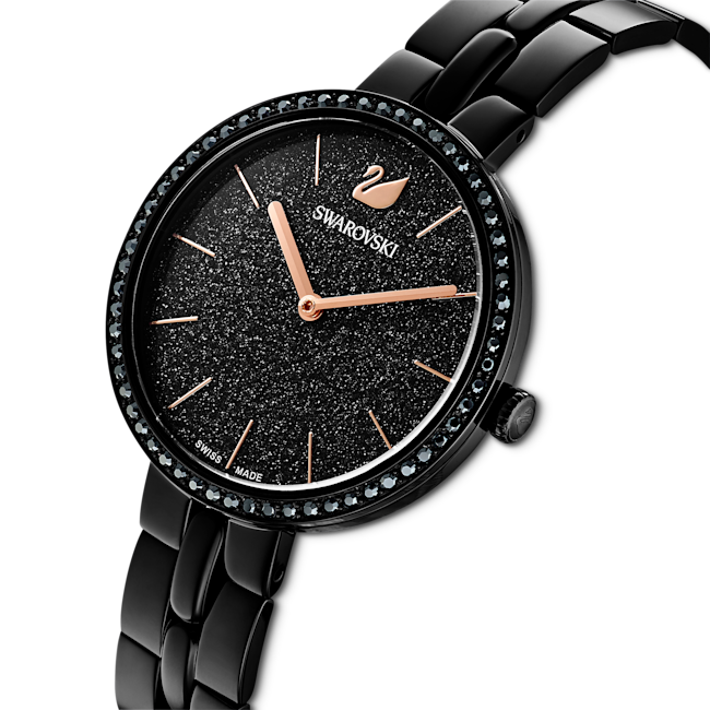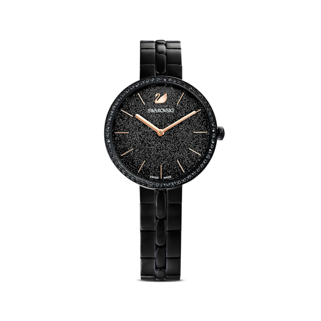 Akıllı, ince, günlük: Bu Swarovski saat ışıltılı kristallerle süslenen moda bir tasarıma sahiptir. Pembe altın rengi kaplama gösterge işaretleri, siyah renk PVD kaplama paslanmaz çelik kasa ve bilekliğin yanı sıra parlak siyah mineyle de ilgi çekici bir zıtlık yakalıyor. Çerçeve, tasarımın kendisine görkemli bir dokunuş katan ışıltılı pavé ile süslendi. Tüm özel günler için harika bir görünüm sunan bu İsviçre Yapımı saat günlük tarzda ancak moda kıyafetler için idealdir.