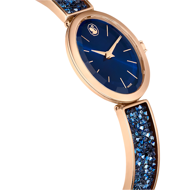 Crystal Rock Oval Saat, İsviçre Üretimi, Kristal bileklik, Mavi, Pembe altın rengi yüzey