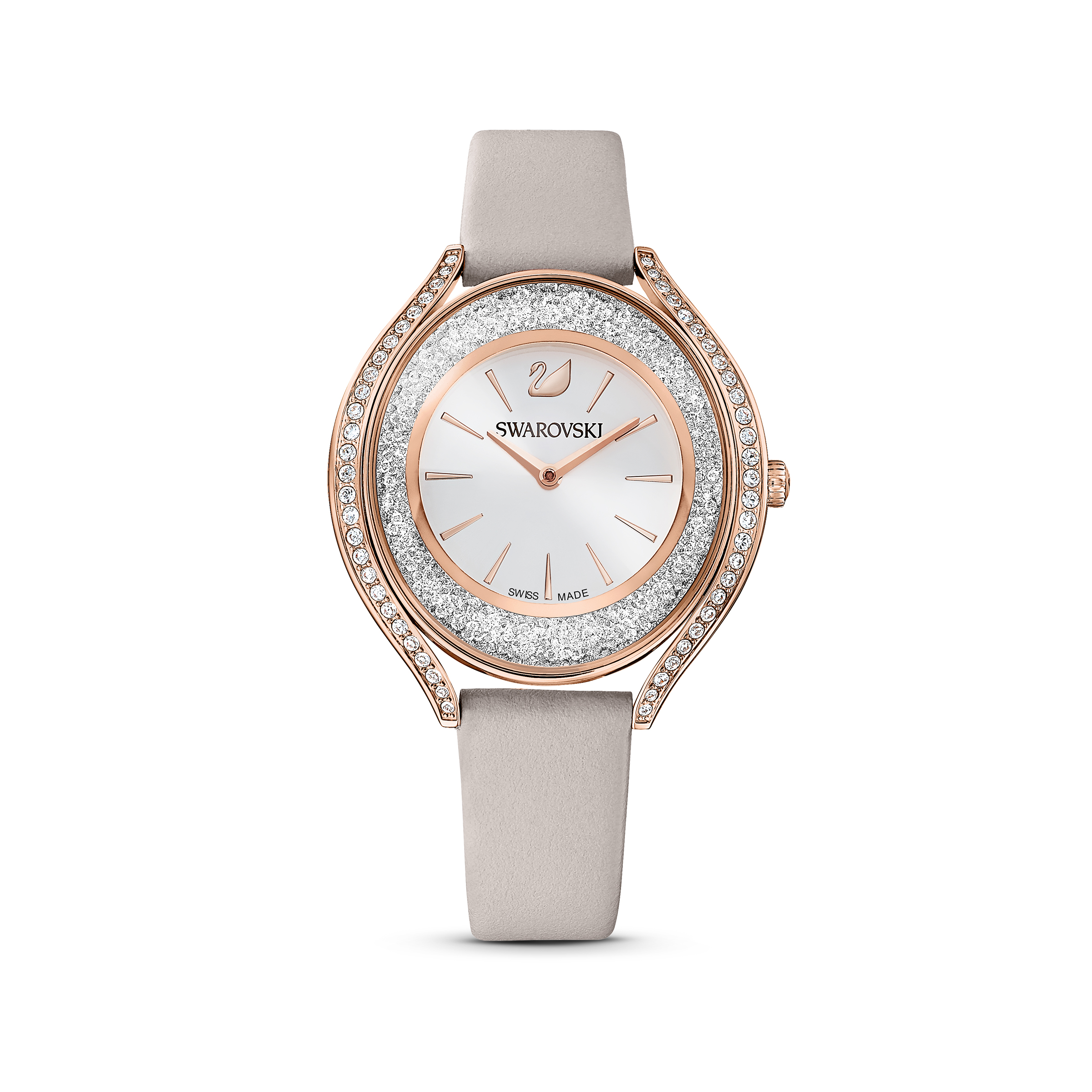 Crystalline Aura Saat, İsviçre Üretimi, Deri kayış, Gri, Pembe altın rengi yüzey