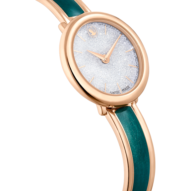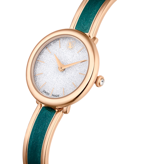 Crystalline Bangle Saat, İsviçre Üretimi, Metal bileklik, Yeşil, Pembe altın rengi yüzey