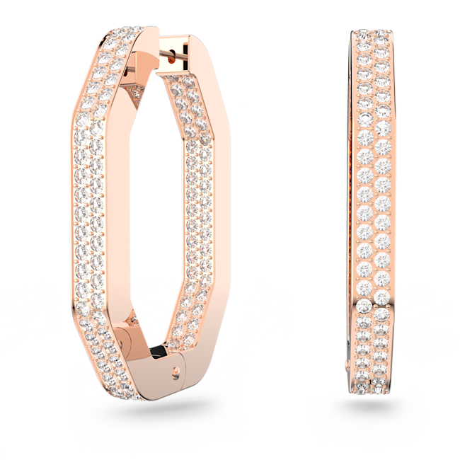 Dextera halka küpeler, Sekizgen şekil, Büyük, Beyaz, Pembe altın rengi kaplama