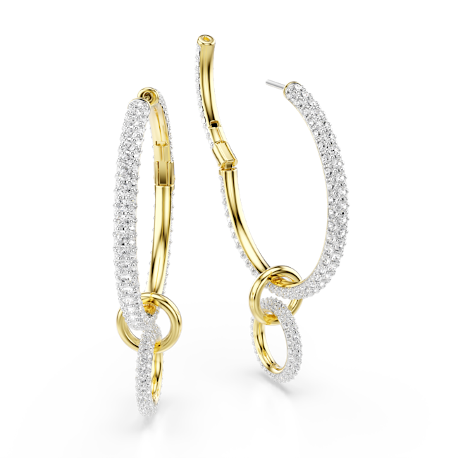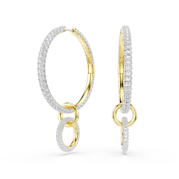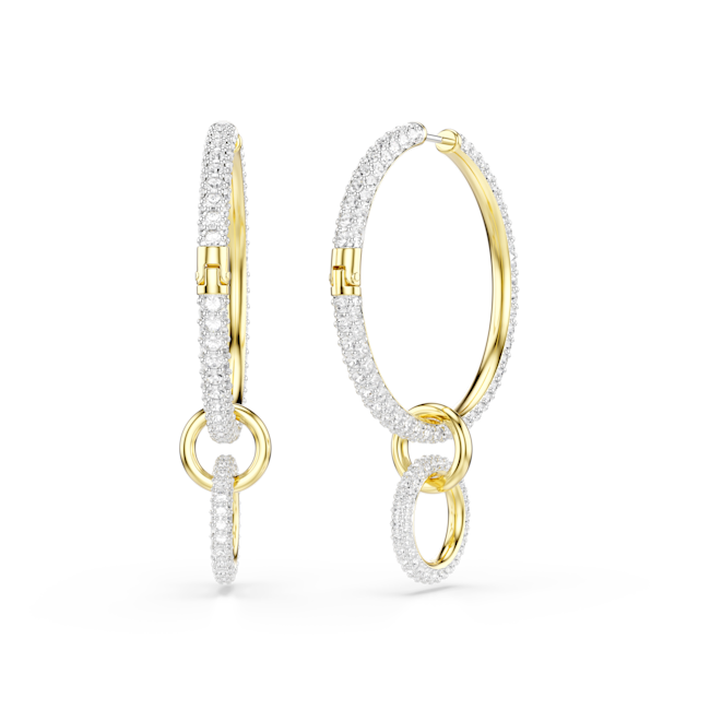 Dextera halka küpeler, Yuvarlak kesim, Beyaz, Altın rengi kaplama