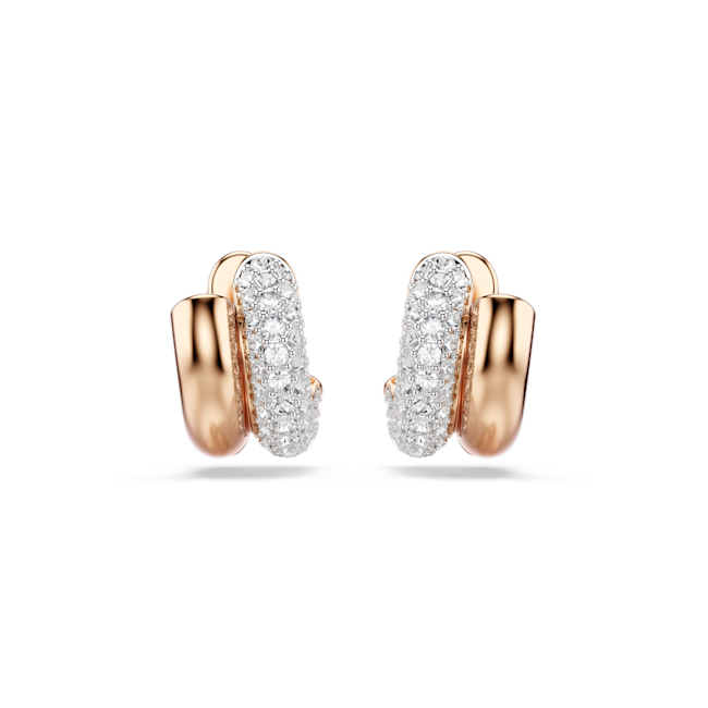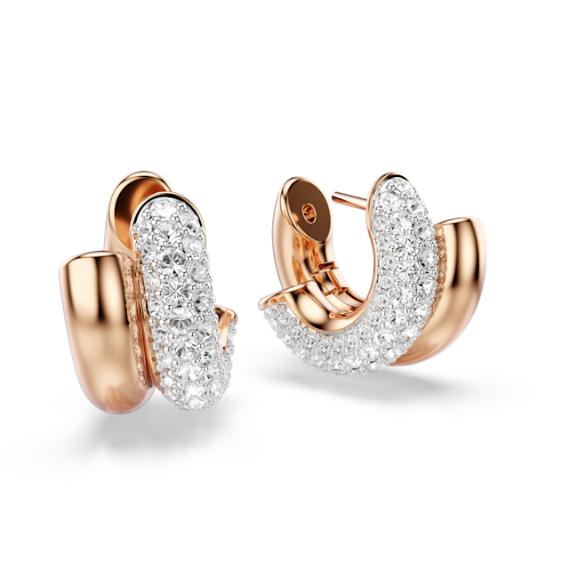 Dextera halka küpeler, Yuvarlak kesim, Mini, Beyaz, Pembe altın rengi kaplama