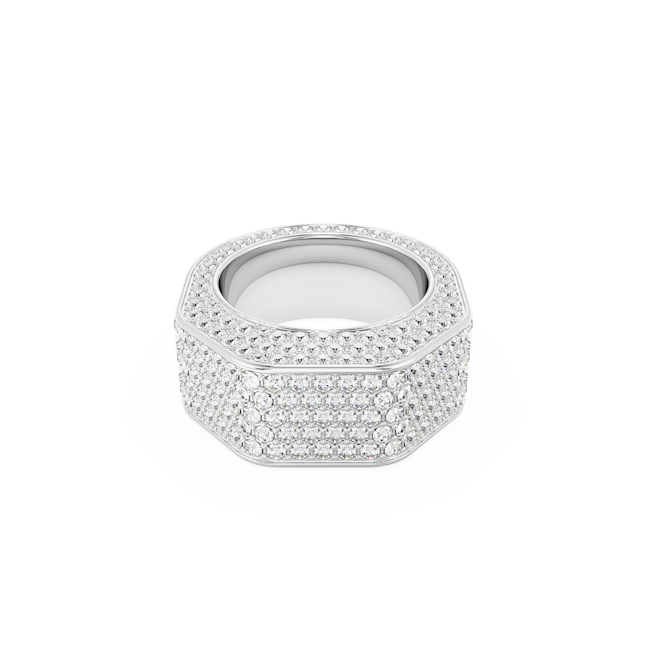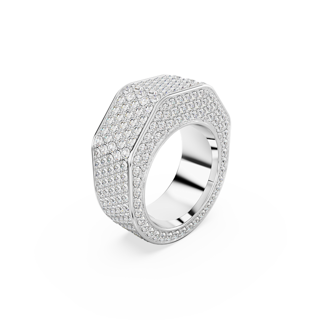 Güçlü ve cesur bir dokunuş sunan bu iddialı kokteyl yüzüğü kesim uzmanlığımızı ve efsanevi pavé tekniğimizi gözler önüne seriyor. Rodyum kaplama tasarım, parıltılı kristallerle kaplı sekizgen şekliyle endüstriyel bir şıklık sunuyor. Karakterinize özgü cesur bir hava oluşturmak için bu yüzüğü görünümünüzün odak merkezi hâline getirin.