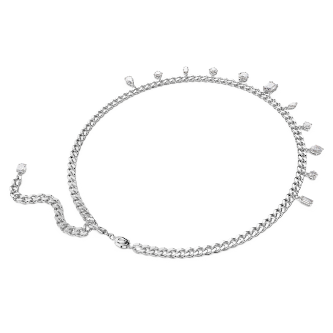 Işık oyunları yaratan bu Imber kolye ile kendinizi lüksün ihtişamına kaptırın. Rodyum kaplamalı ve farklı kesimlere sahip bir dizi sallantılı kristal uç ile tasarlanmış bu zincir, uzatma zincirinin ucundaki tek Swarovski Zirkonya ile farklını ortaya koyuyor. Her bir ayrıntısı özenle tasarlanarak günlük tarzınızı tamamlayacak çarpıcı bir mücevher parçası ortaya çıkarıldı.
