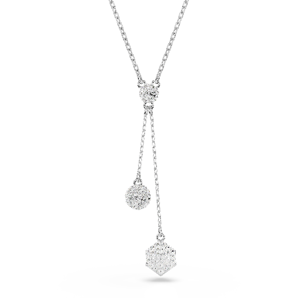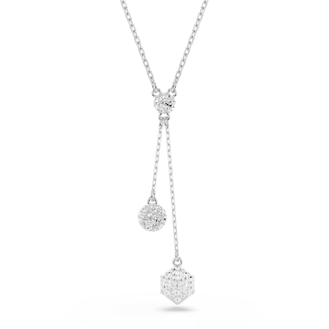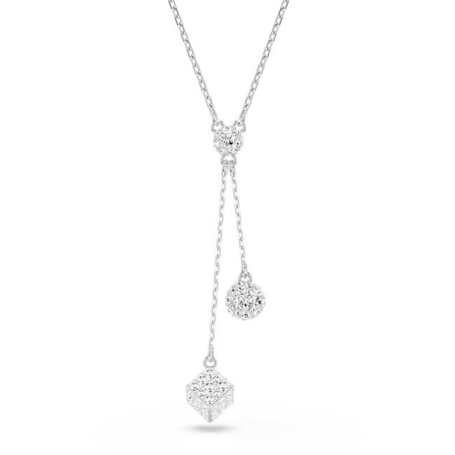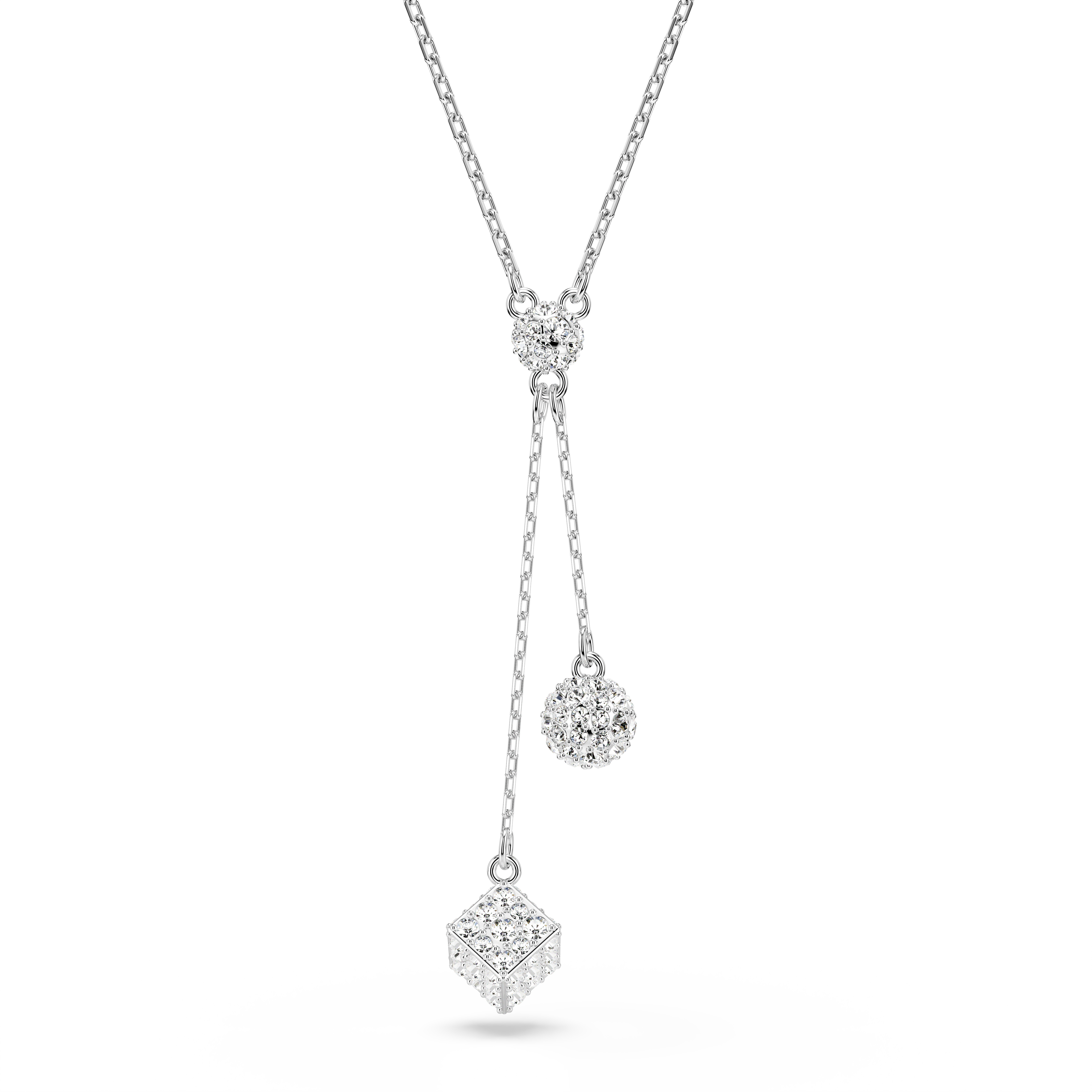 Dextera Y Kolye, Yuvarlak kesim, Küre ve küp, Beyaz, Rodyum kaplama