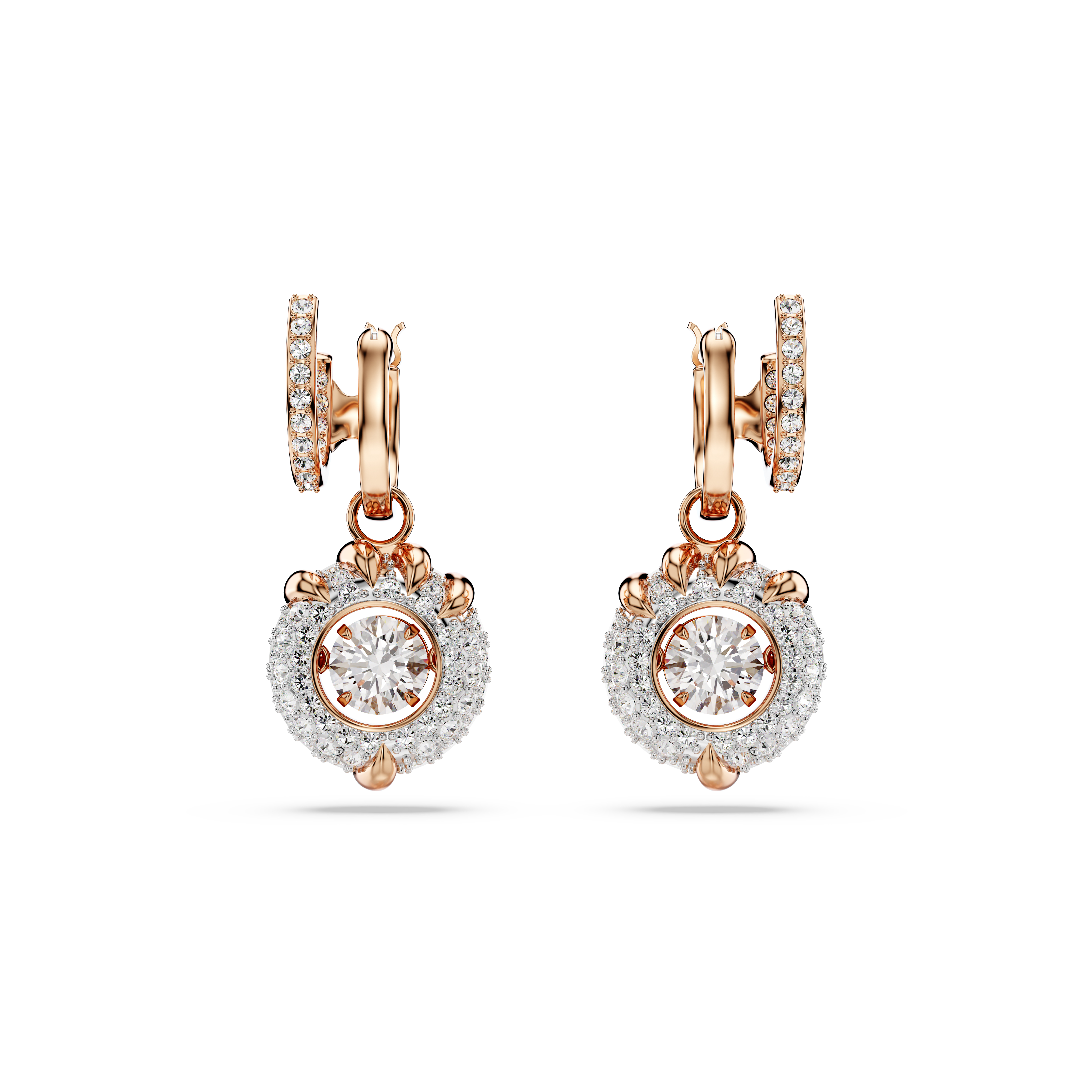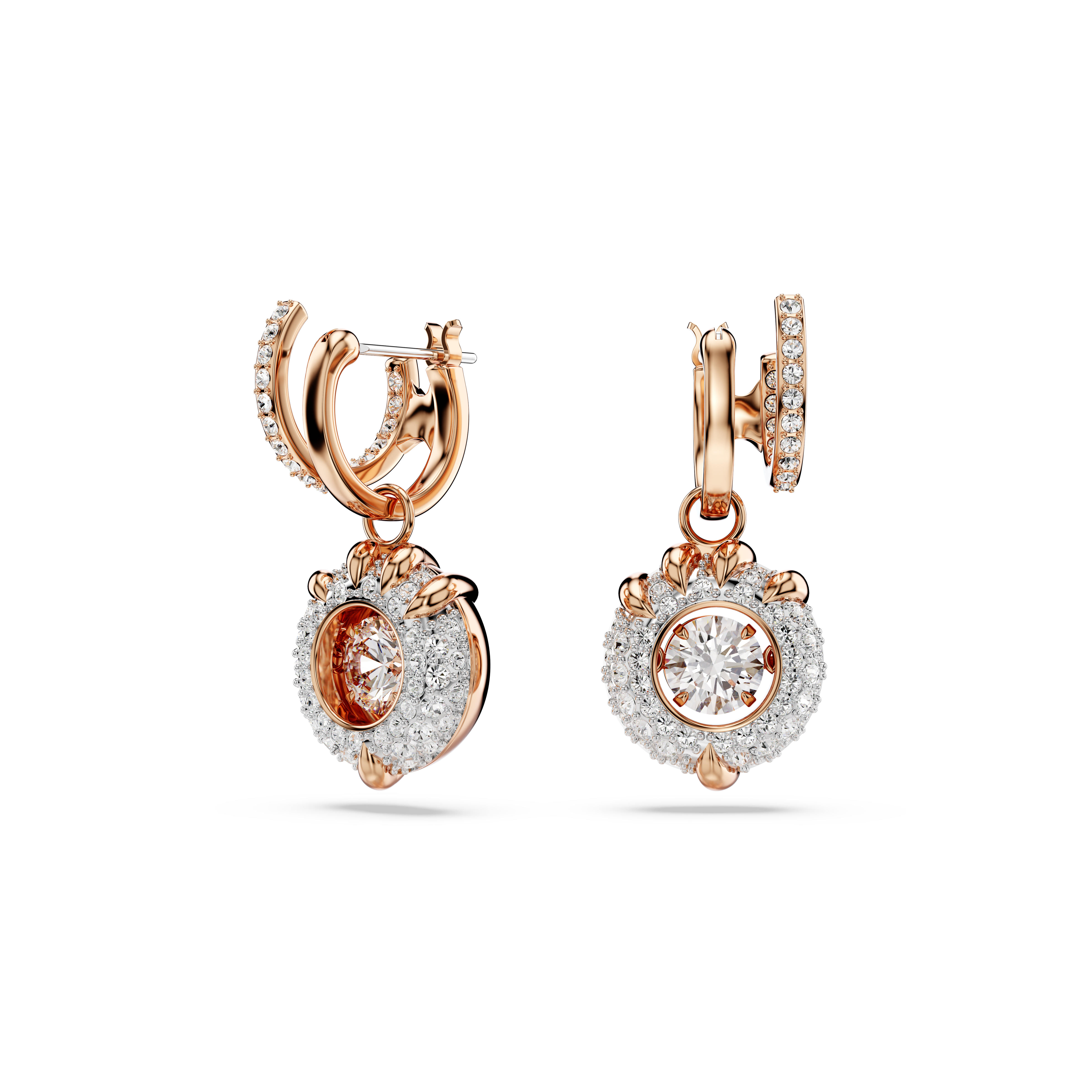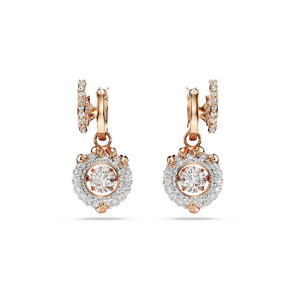 Bu uğurlu Ejderha Yılı küpeyle görünümünüze ışıltı katın. Her bir pembe altın rengi kaplama parça, orta kısmında dans eden bir Swarovski Zirkonyaya sahip berrak kristallerle süslü bir şans parasını sıkıca kavrayan güçlü bir ejderha pençesine yer veriyor. Parçanın tarzına ekstra çok yönlülük katacak şekilde çıkarılabilir bir halka da eklendi. Bu iğneli küpeyi kendiniz kullanabilir veya özel birine hediye edebilirsiniz.