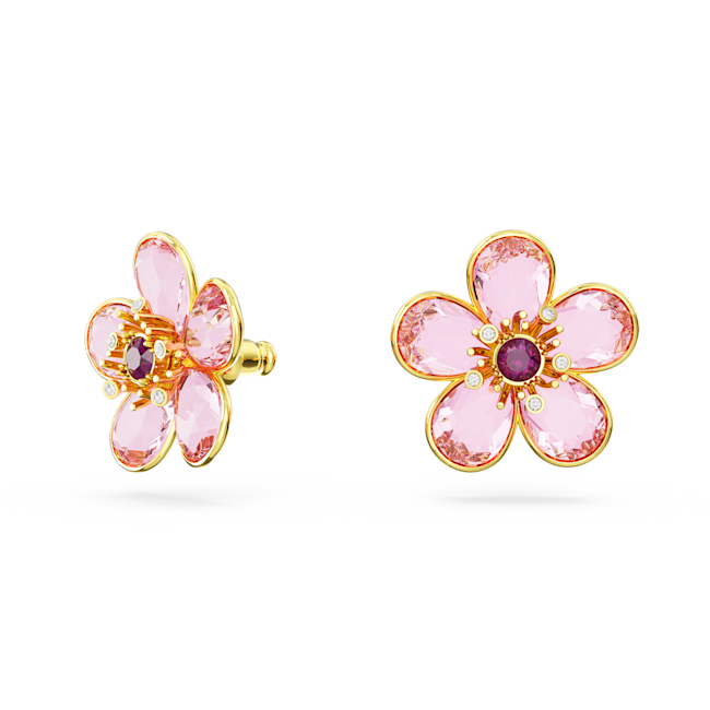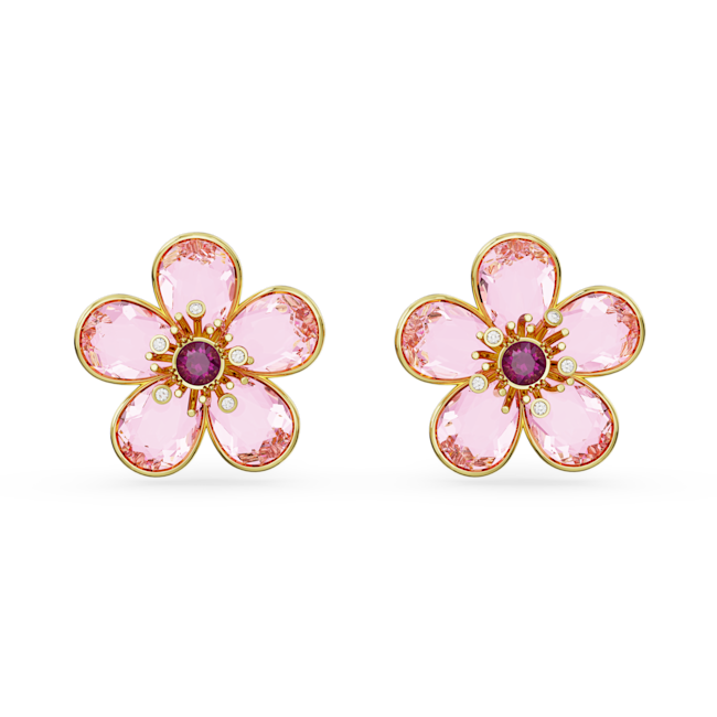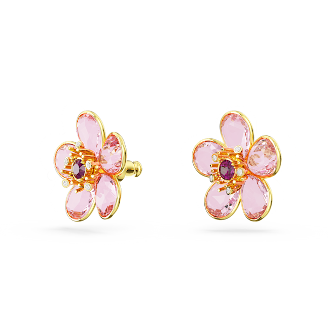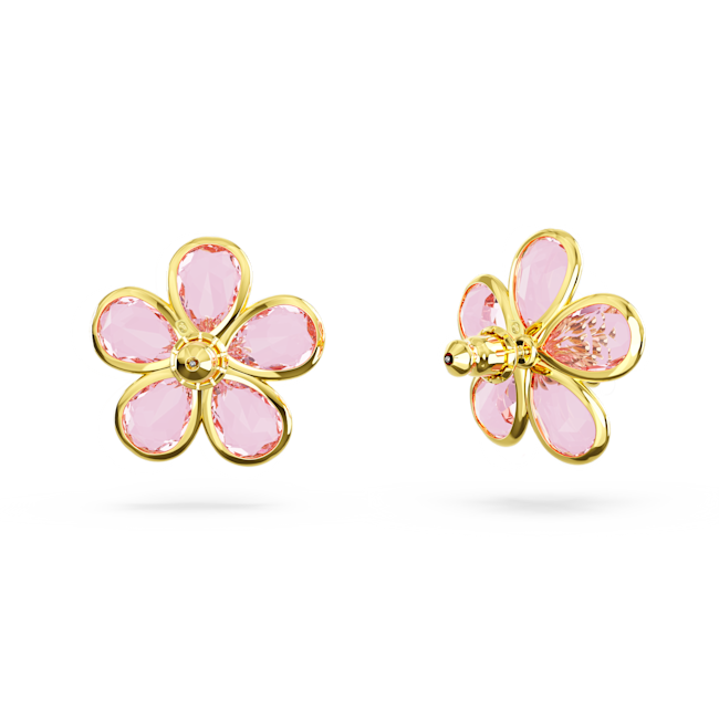 Florere düğme Küpeler, Çiçek, Pembe, Altın rengi kaplama