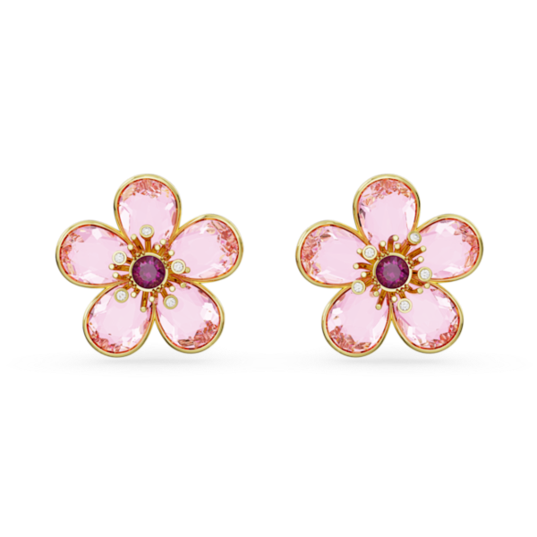 Doğanın muhteşem güzelliğinden ilham alan bu göz alıcı küpeler, kaliteli kristalleriyle tüm dikkatleri çekiyor. Altın rengi kaplama üzerine yerleştirilmiş pembe tasarım, daha koyu bir renkteki merkez taşın etrafına ustalıkla dizilmiş beş adet yaprağa yer veriyor. Çiçek kokulu günler için etkileyici bir tasarım.
