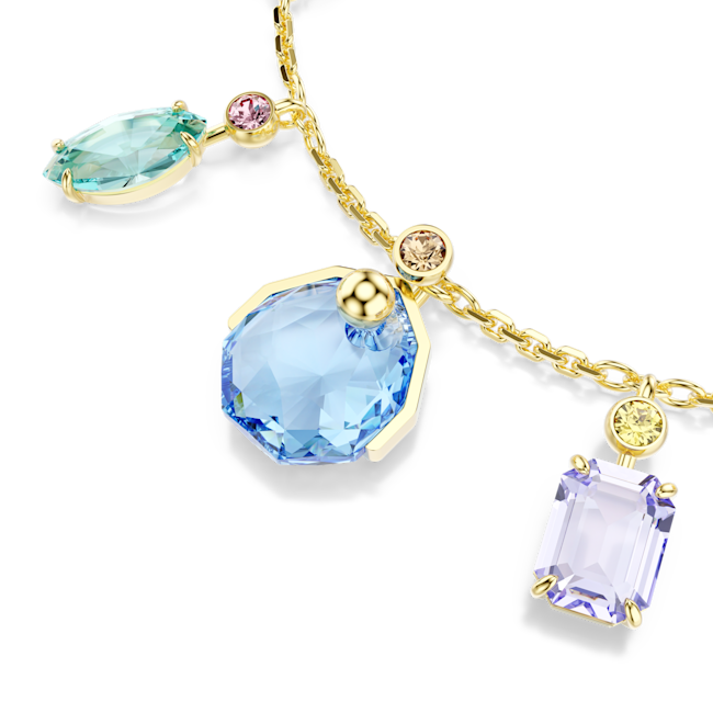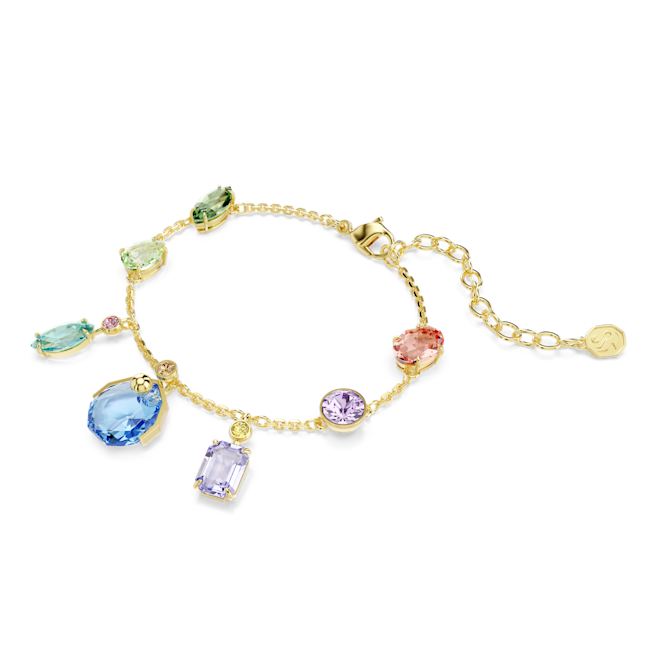 Gema Bileklik, Karışık kesimler, Sallantılı kristaller, Çok renkli, Altın rengi kaplama