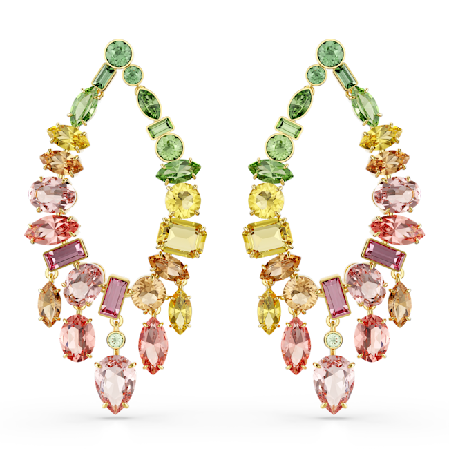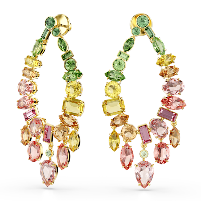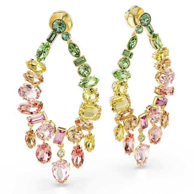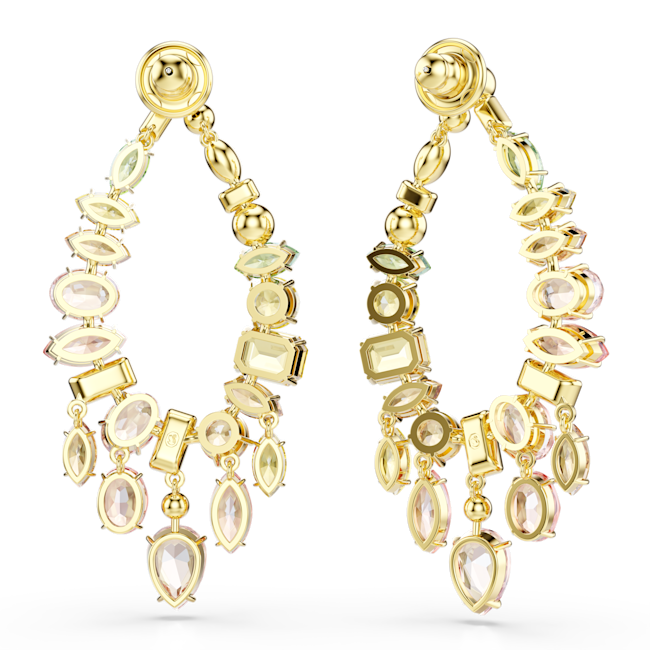 Gema damla küpeler, Karışık kesim, Avize, Çok renkli, Altın rengi kaplama