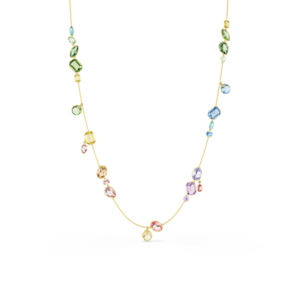 Gema Dizi Kolye, Karışık kesimler, Çok renkli, Altın rengi kaplama