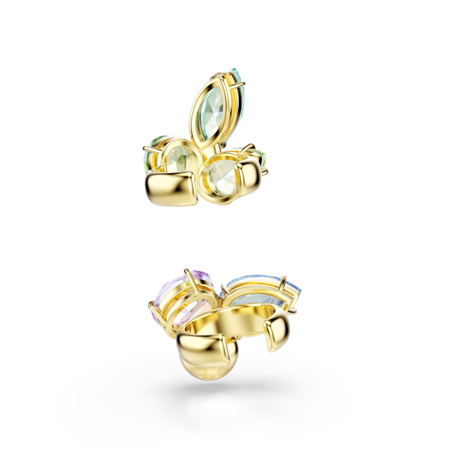 Gema kelepçe küpe, Asimetrik tasarım, Karışık kesimler, Çok renkli, Altın rengi kaplama
