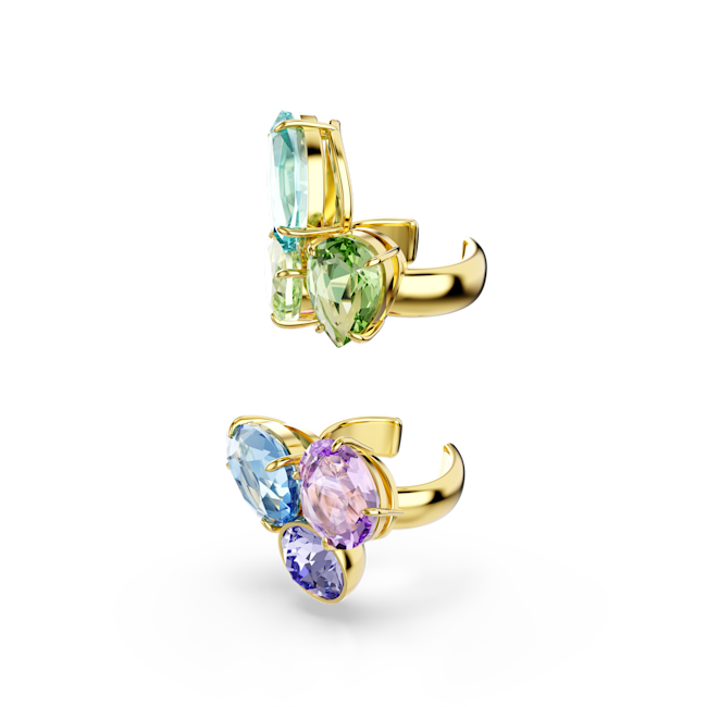 Bu neşeli Gema kelepçe küpeler, sade ama etkili bir tarz seçeneğidir. Altın rengi kaplama set, her biri üç adet çok renkli kristalle süslenmiş iki asimetrik kelepçe küpeden oluşur. Gema’nın imza niteliğindeki bu tarzında, kristaller çok sayıda şekil ve tonda ortaya çıkarak takıya kendine özgü bir karakter kazandırır.