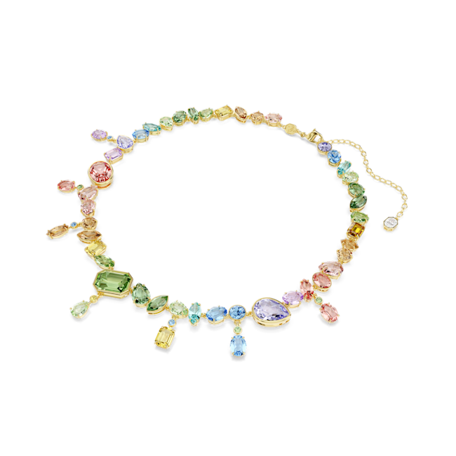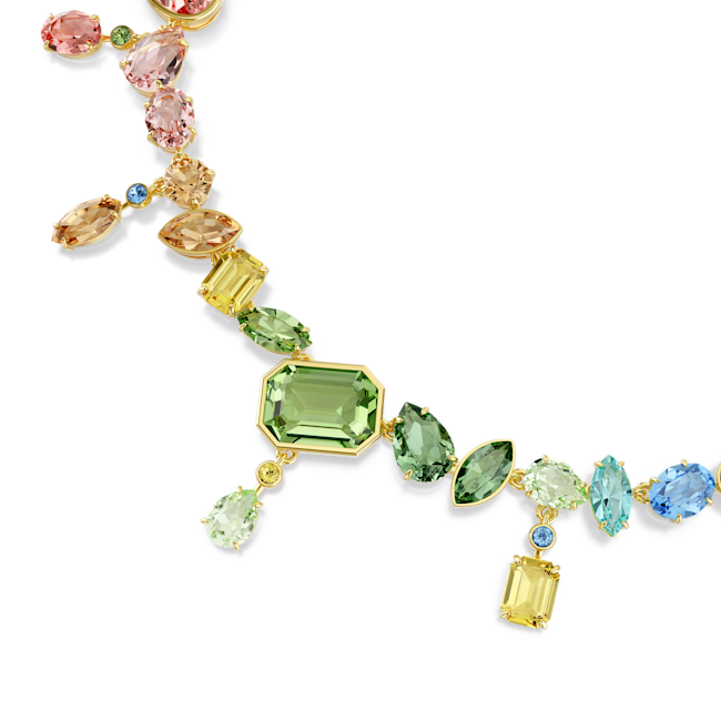 Gema Kolye, Karışık kesimler, Sallantılı kristaller, Çok renkli, Altın rengi kaplama