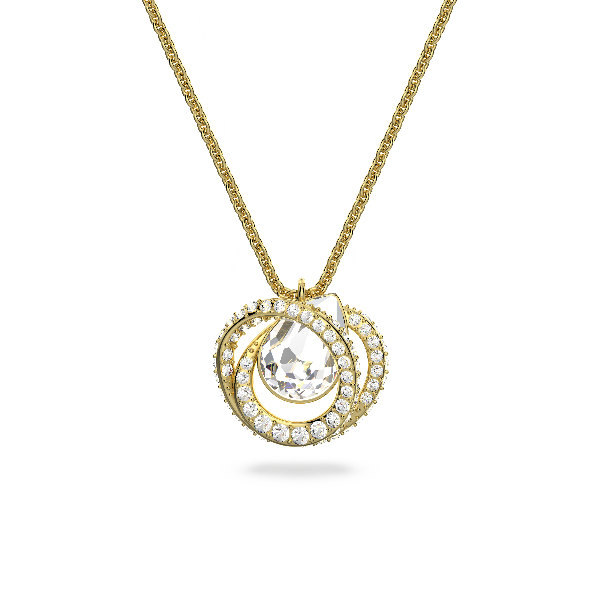 Swarovski’nin üstün işçiliğini rodyum kaplama üzerinde parıldayan pavé sarmalların içinde armut kesim bir kristalle sergileyen bu çarpıcı kolye ucuyla baş döndürmeye hazırlanın. Parçayı tek başına kullanın veya daha etkileyici bir görünüm yaratmak için Generation serisine ait diğer tasarımlarla birlikte kullanın.