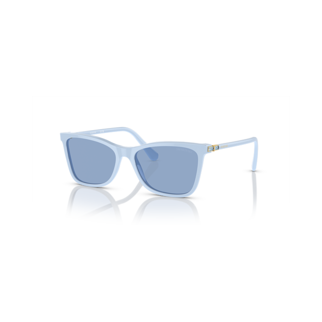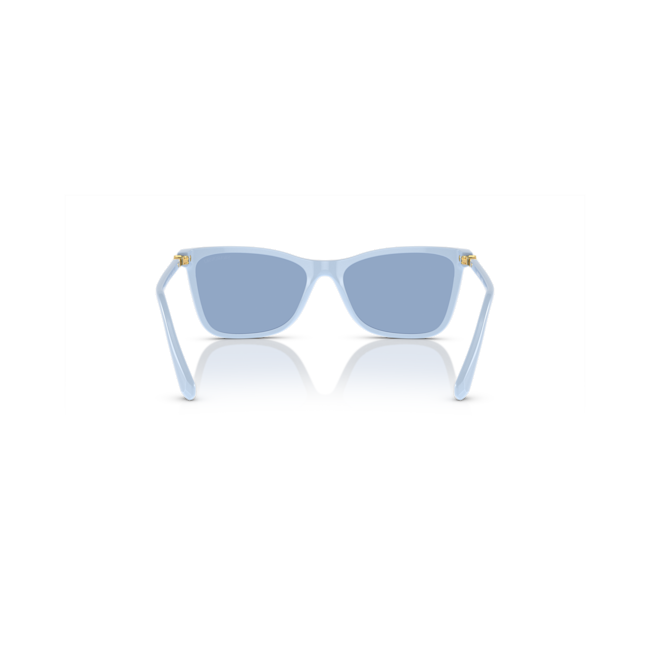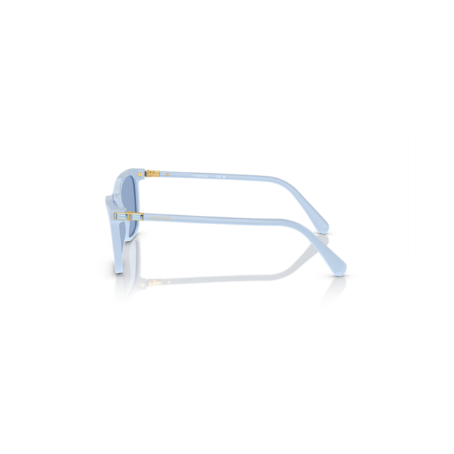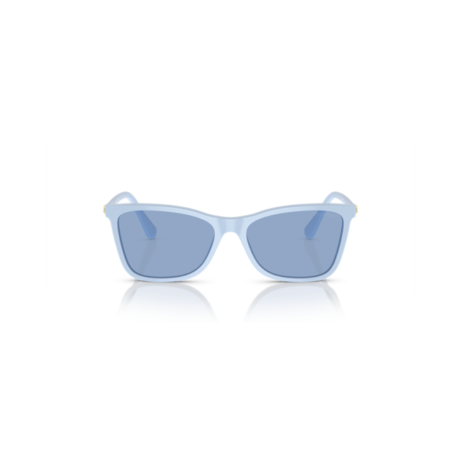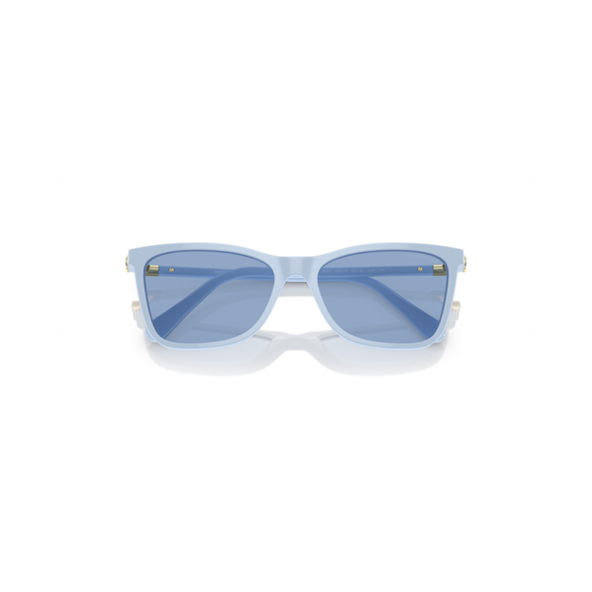 Bu canlı kare şekilli güneş gözlüğü modeliyle tarzınıza etkileyici bir dokunuş katın. Şık, çağdaş tasarım, açık mavi cam ve asetat çerçevelerin yanı sıra her iki sapta da yer alan sekizgen kesim mavi kristallerle tamamlandı. Taşların etrafındaki altın rengi detaylar, lüks hissiyatını yükseltiyor. Klasik modele şık bir yorum getiren bu tasarımı aksesuarlarınızın arasına katın.