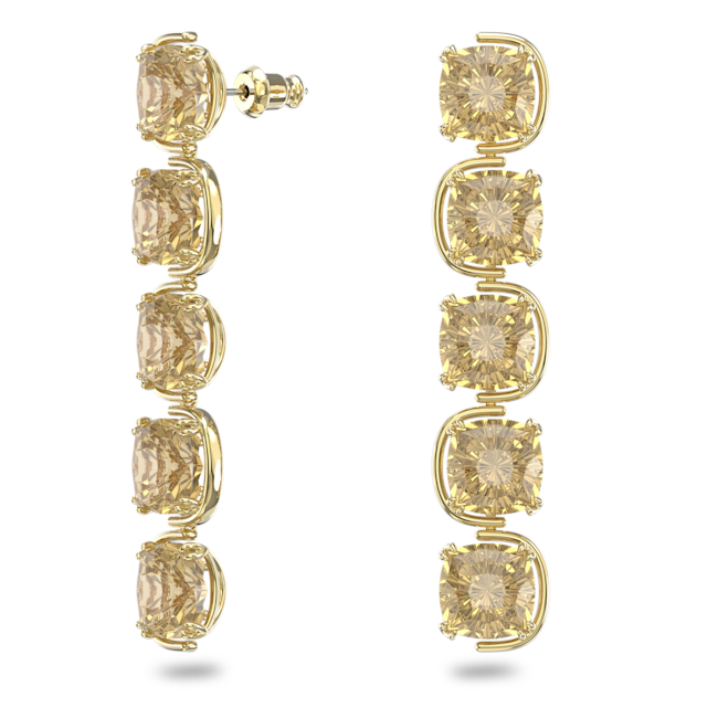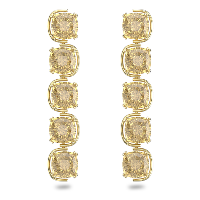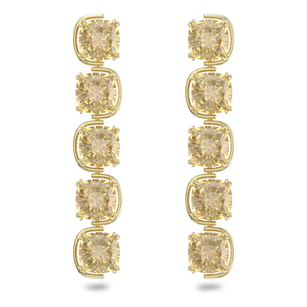 Harmonia damla küpeler, Yastık kesim hareketli kristaller, Altın Rengi, Altın rengi kaplama
