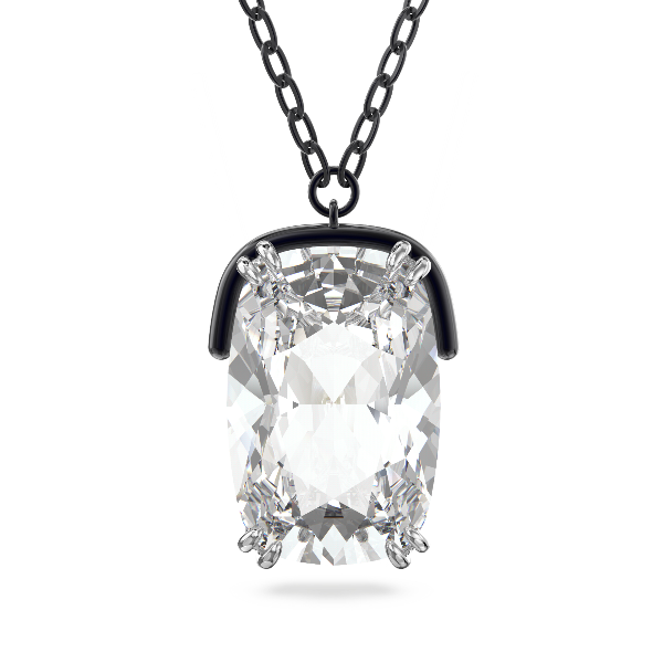 Zarif metal zincirden sarkan bir adet büyük boy, uzatılmış yastık kesim kristalle ustalıkla üretilmiş olan bu kolye, kolye ucunun hareket ediyor olduğu illüzyonunu yaratmak için tasarlandı. Son derece çok yönlü bir parça olan bu kolye, zarif bir akşam görünümü için Harmonia ailesine ait diğer parçalarla birlikte kullanılabilir ve tek başına takılabilir; her şekilde tüm dikkatleri üzerine çekecektir.Kreatif Direktör Giovanna Engelbert tarafından Collection I için tasarlanmış olan bu kolye, Harmonia ailesinin bir üyesi.