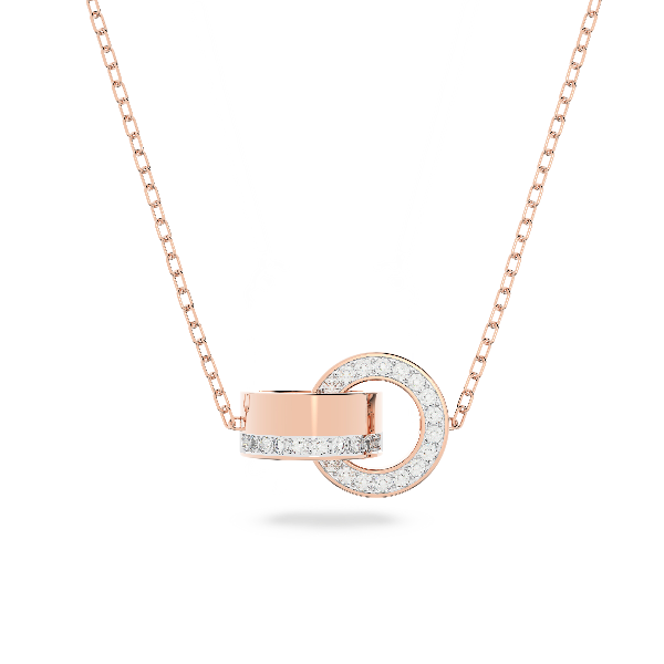Bu asimetrik kolye ucuyla tarzınızın sınırlarını zorlayın. Berrak kristal pavé ile oluşturulan iç içe geçmiş iki çemberin rodyum kaplama zincirden sarkıtılması, ışık oyunları ortaya çıkarıyor.