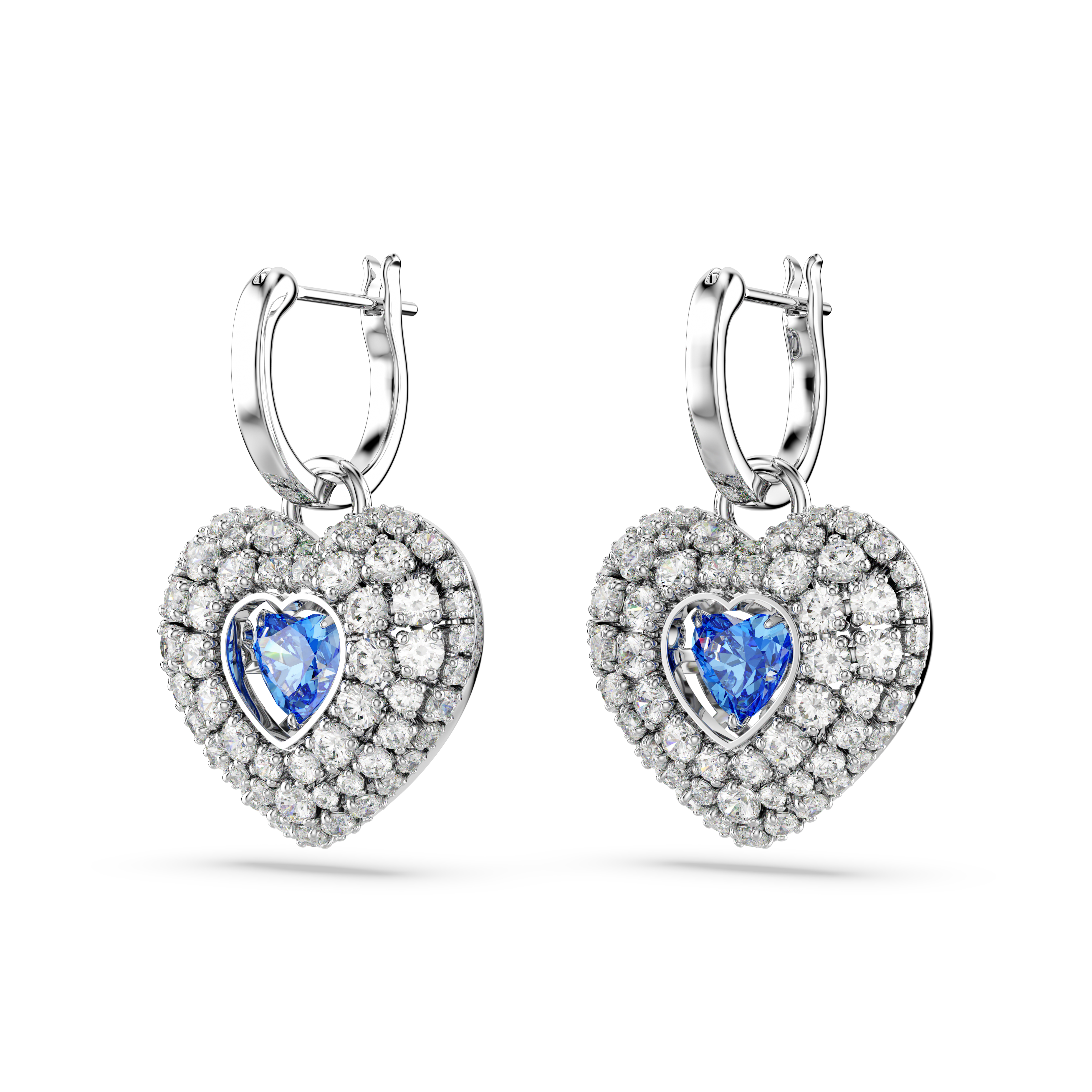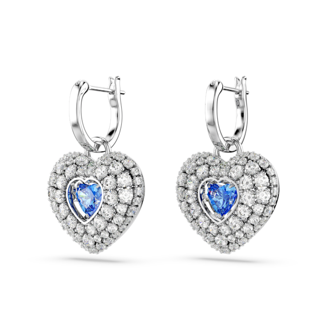Hyperbola damla küpeler, Kalp, Mavi, Rodyum kaplama