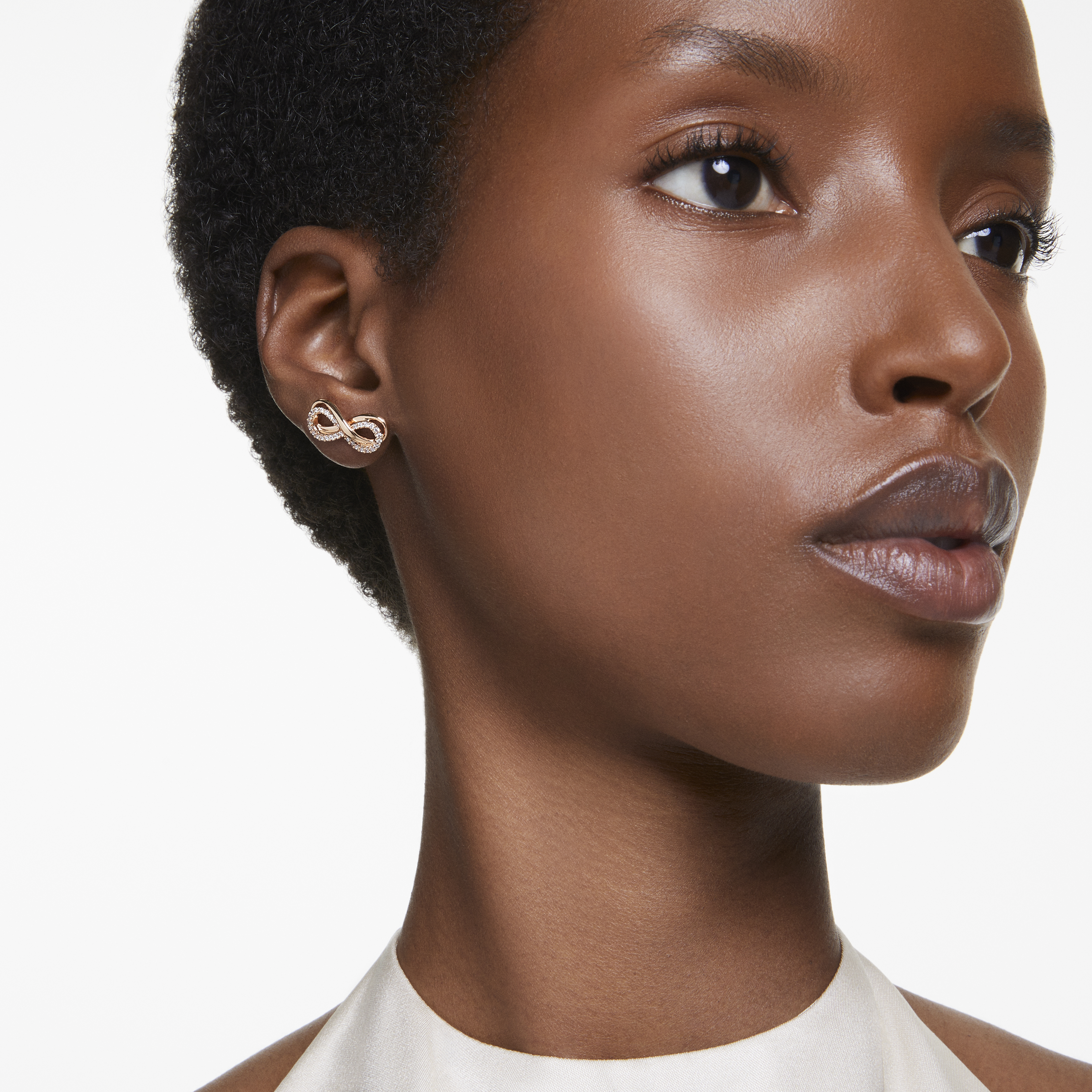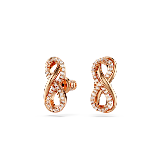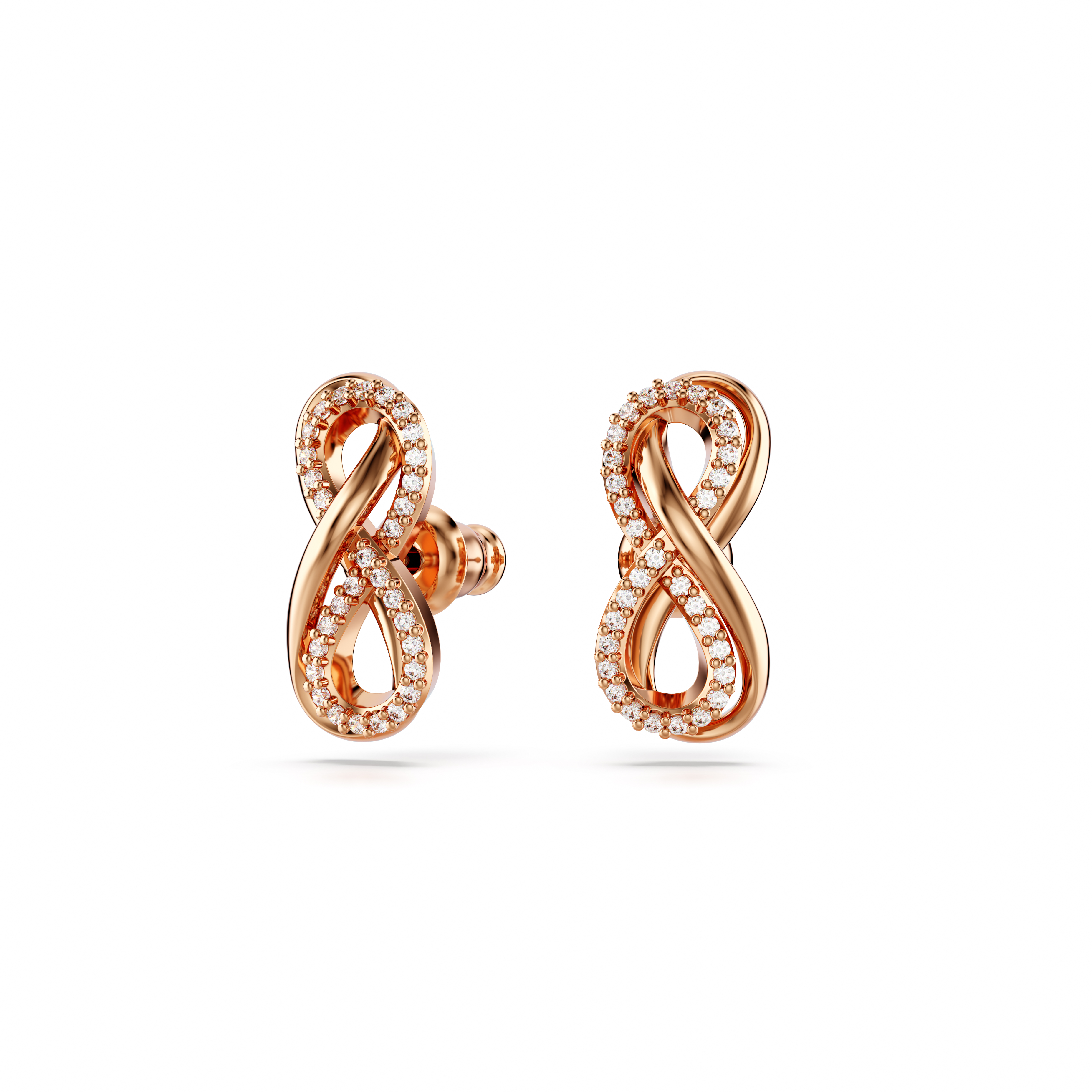 Bu çarpıcı Hyperbola küpe, sonsuza dek kullanabileceğiniz bir tarz sunuyor. Pembe altın rengi kaplama parçaların her biri sonsuzluk motifi şeklinde tasarlandı ve berrak Swarovski Zirkonyalardan oluşan bir cümbüşle süslendi. Zamansız ve zarif olan bu parça, zarif bir lüks için uyumlu bir kolyeyle birlikte veya tek başına kullanılabilir.