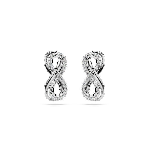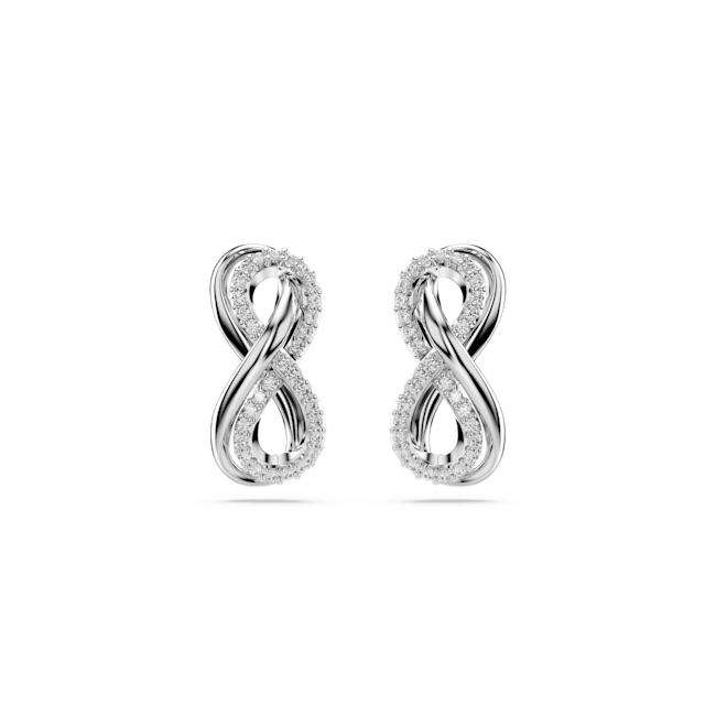 Bu çarpıcı Hyperbola küpe, sonsuza dek kullanabileceğiniz bir tarz sunuyor. Rodyum kaplama parçaların her biri sonsuzluk motifi şeklinde tasarlandı ve berrak Swarovski Zirkonyalardan oluşan bir cümbüşle süslendi. Zamansız ve zarif olan bu parça, zarif bir lüks için uyumlu bir kolyeyle birlikte veya tek başına kullanılabilir.