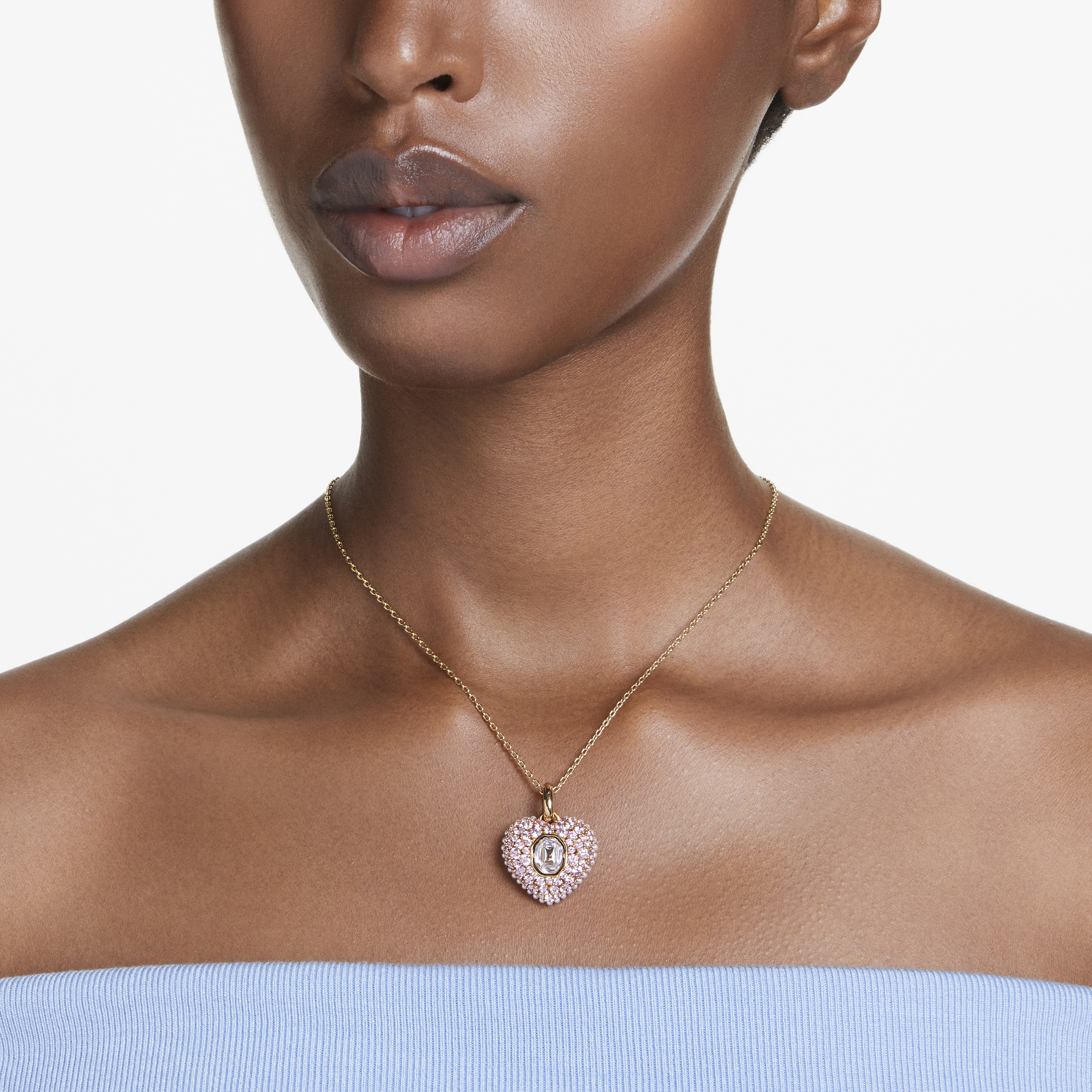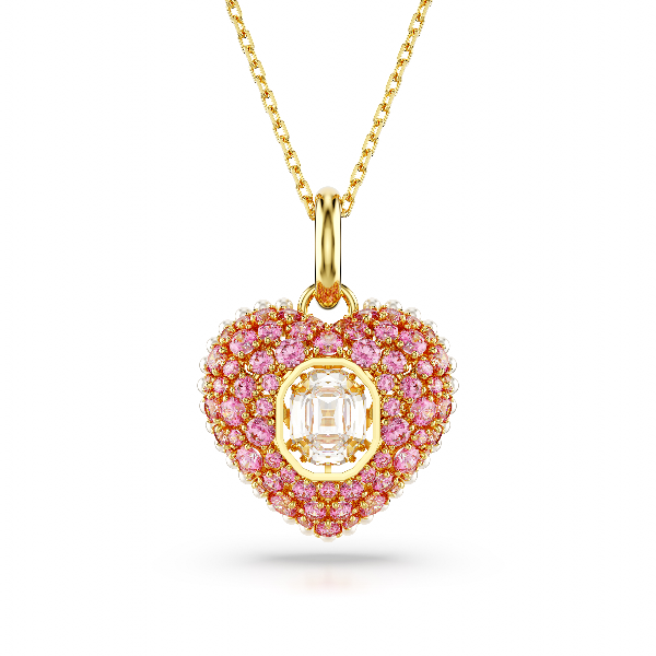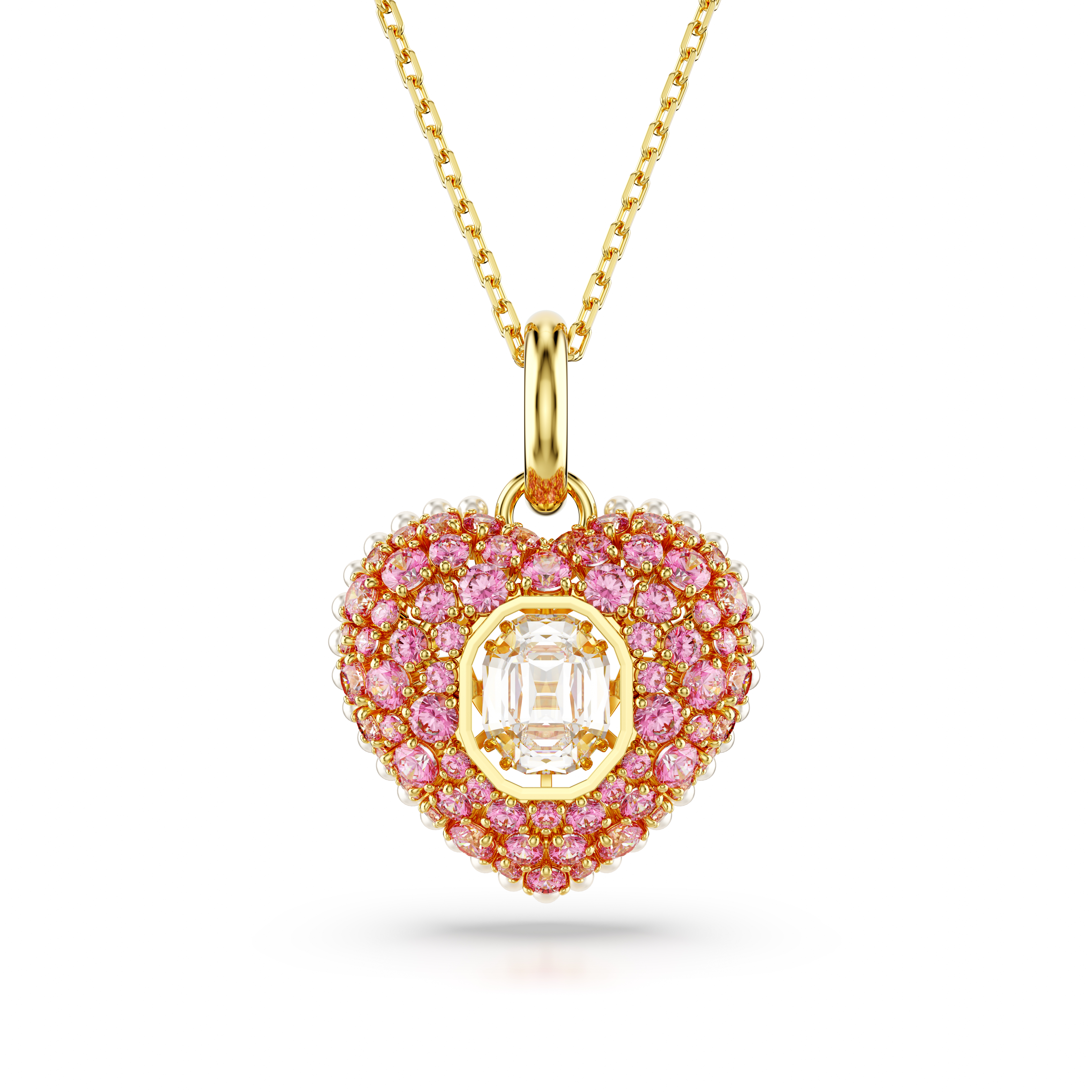Hyperbola Kolye, Sekizgen kesim, Kristal inciler, Kalp, Pembe, Altın rengi kaplama
