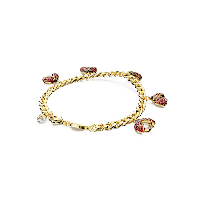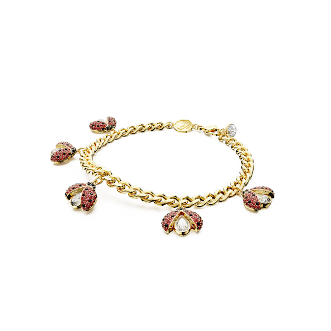 Idyllia serisinin parçası olan bu çekici bileklik, altın rengi kaplamalı zincirin üzerine yerleştirilmiş uğur böceği ailesini gözler önüne seriyor. Işıltılı beş minik uğur böceği, tamamen pavé ile detaylandırılmış kırmızı ve siyah kristallerden oluşuyor. Swarovski'nin imza niteliğindeki savoir-faire'ini gözler önüne seren her bir uğur böceği, kanatlarının içinde armut şeklinde taş bulunduruyor. Sizin için özel birine hediye edin veya bu olağanüstü tasarımı kendinize saklayın.