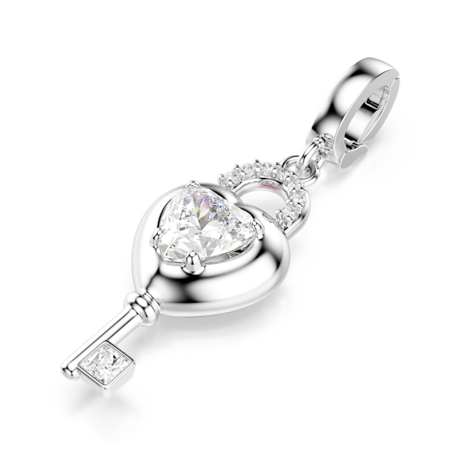 Idyllia Charm, Karışık kesimler, Anahtarlı kalp, Beyaz, Rodyum kaplama