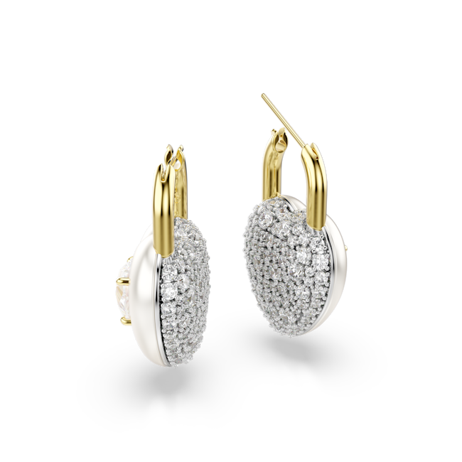 Romantik bir tarz için şekillendirilen bu Idyllia küpeler, iki kalp şeklinde madalyon formundadır. Her bir altın rengi kaplama parça, bir tarafında yuvarlak Swarovski Zirkonya, diğer tarafında ise tek bir kalp şeklinde kristal içerir. Tutkuyu yükseltmek için her iki tarafını da sergileyebilirsiniz.