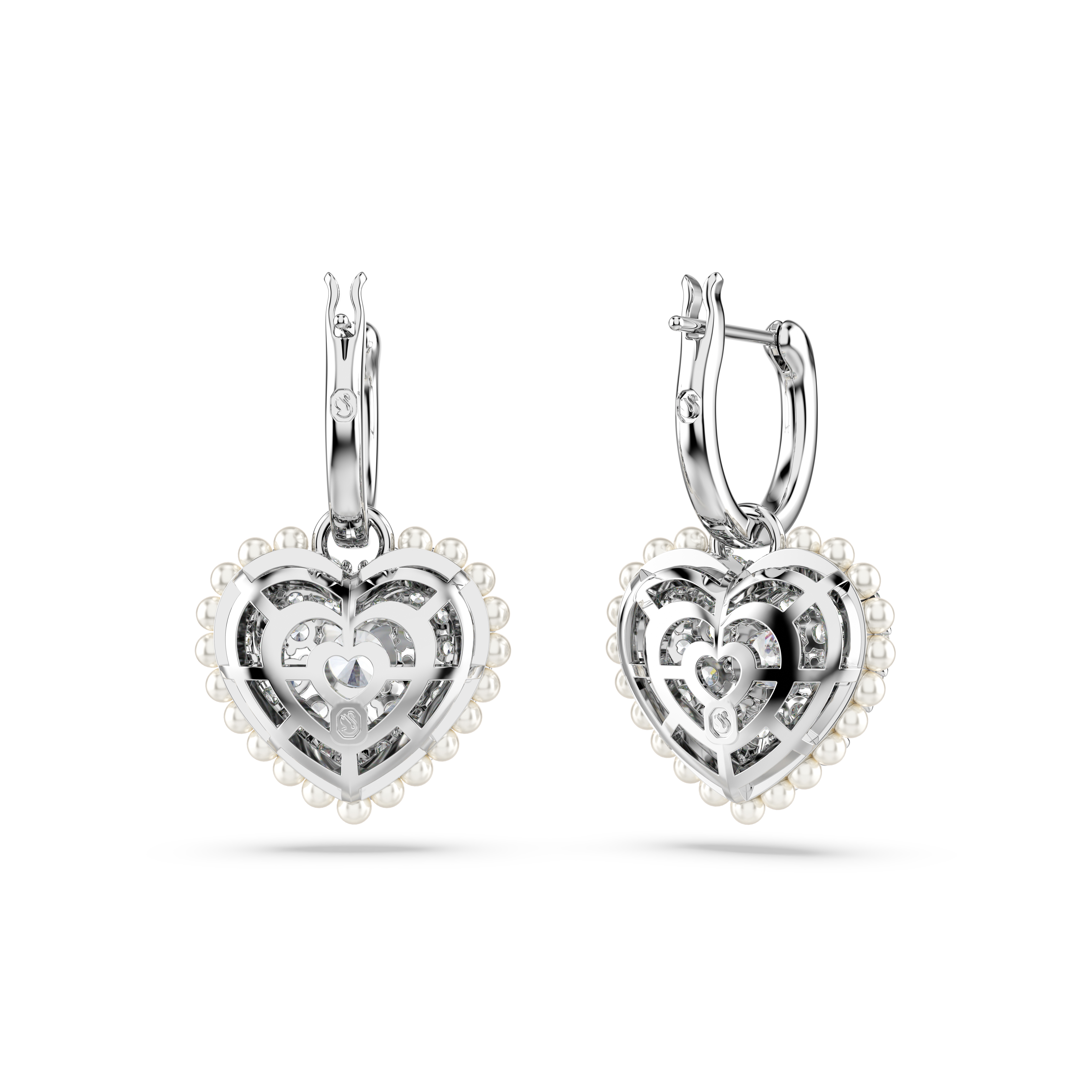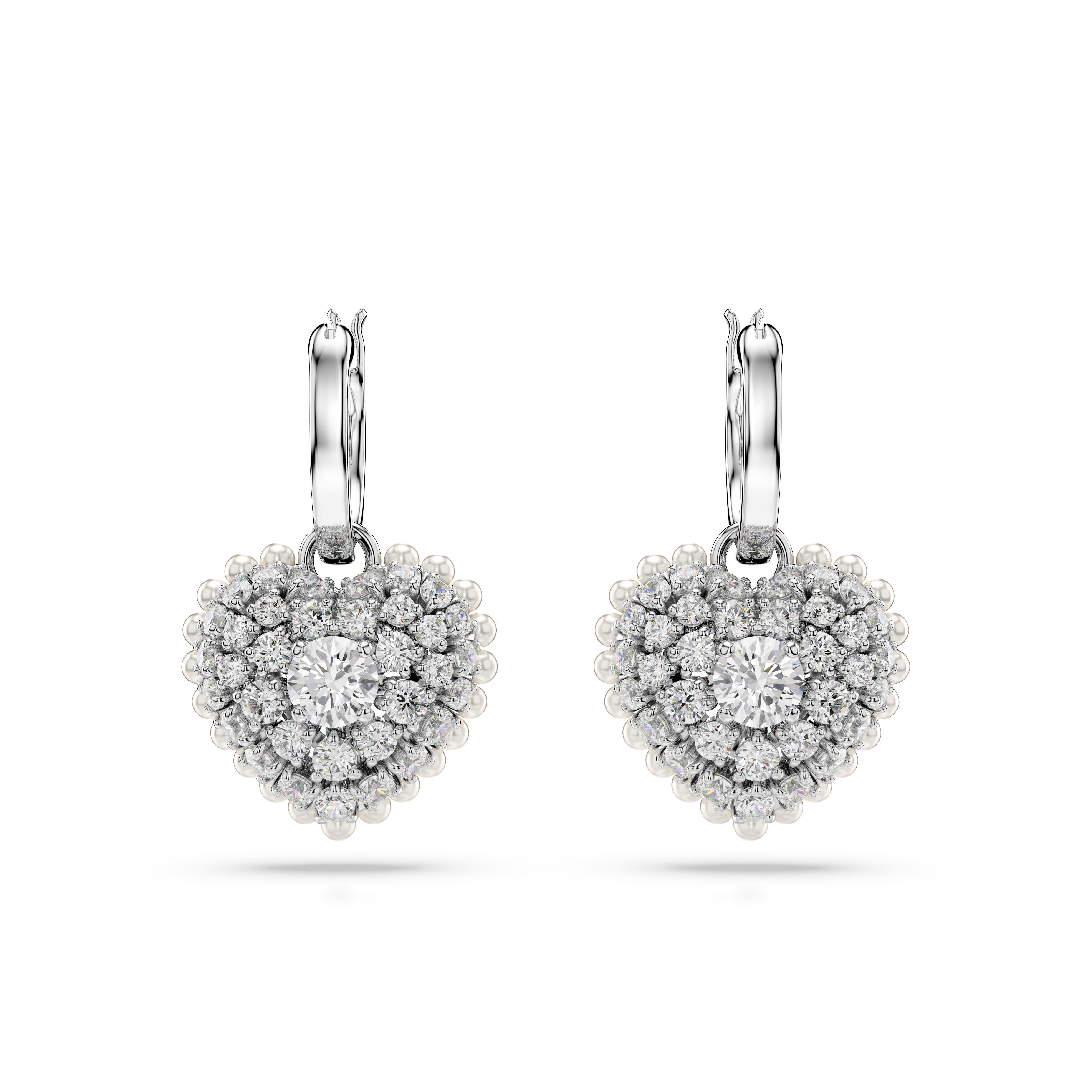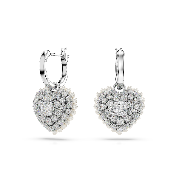 Idyllia damla küpeler, Kristal inci, Kalp, Beyaz, Rodyum kaplama