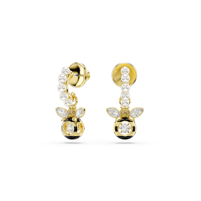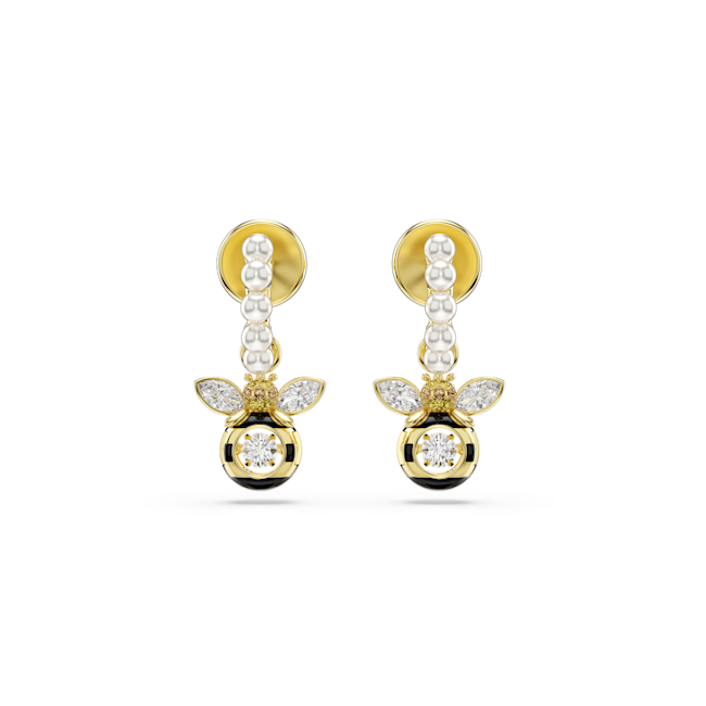 Idyllia damla küpeler, Kristal inci, Karışık kesimler, Arı, Çok renkli, Altın rengi kaplama
