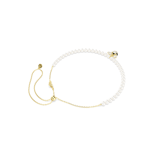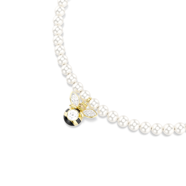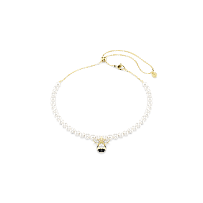 Her görünüme tatlı ve lüks bir dokunuş katan bu Idyllia gerdanlıkta, ayarlanabilir zincir kolye ve bir dizi beyaz Swarovski Kristal İnci bulunuyor. Merkezinde ise berrak kristaller ve siyah-sarı çizgilerle detaycı bir şekilde işlenmiş sevimli bir arı motifi yer alıyor. Doğadan ilham alan parçalardan oluşan bir koleksiyon yaratmak için arı küpeleri, yüzük veya halka bileklikle kombinleyebilirsiniz.